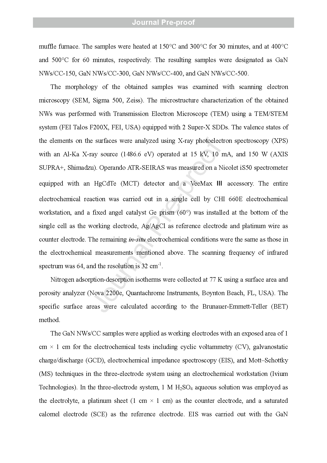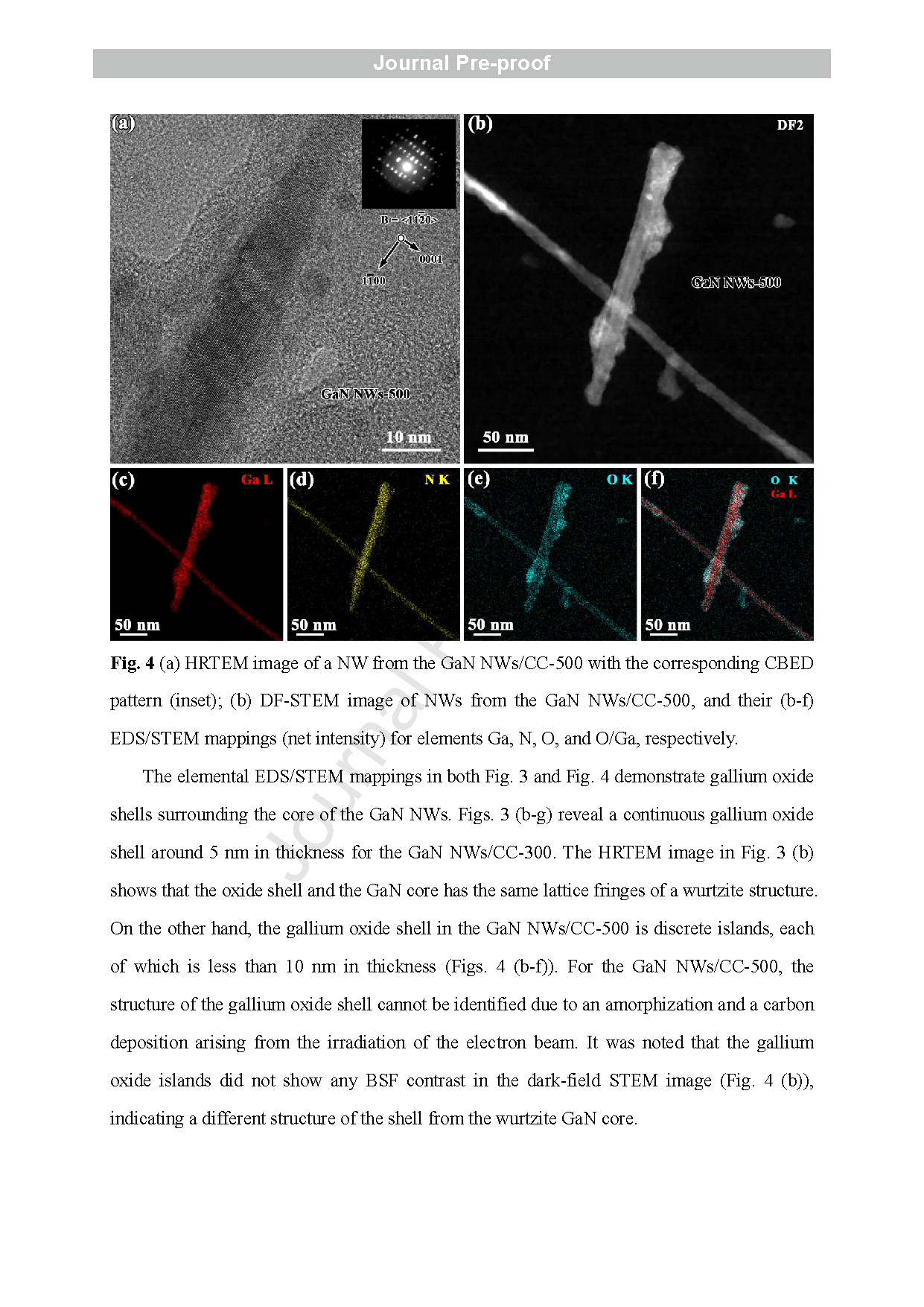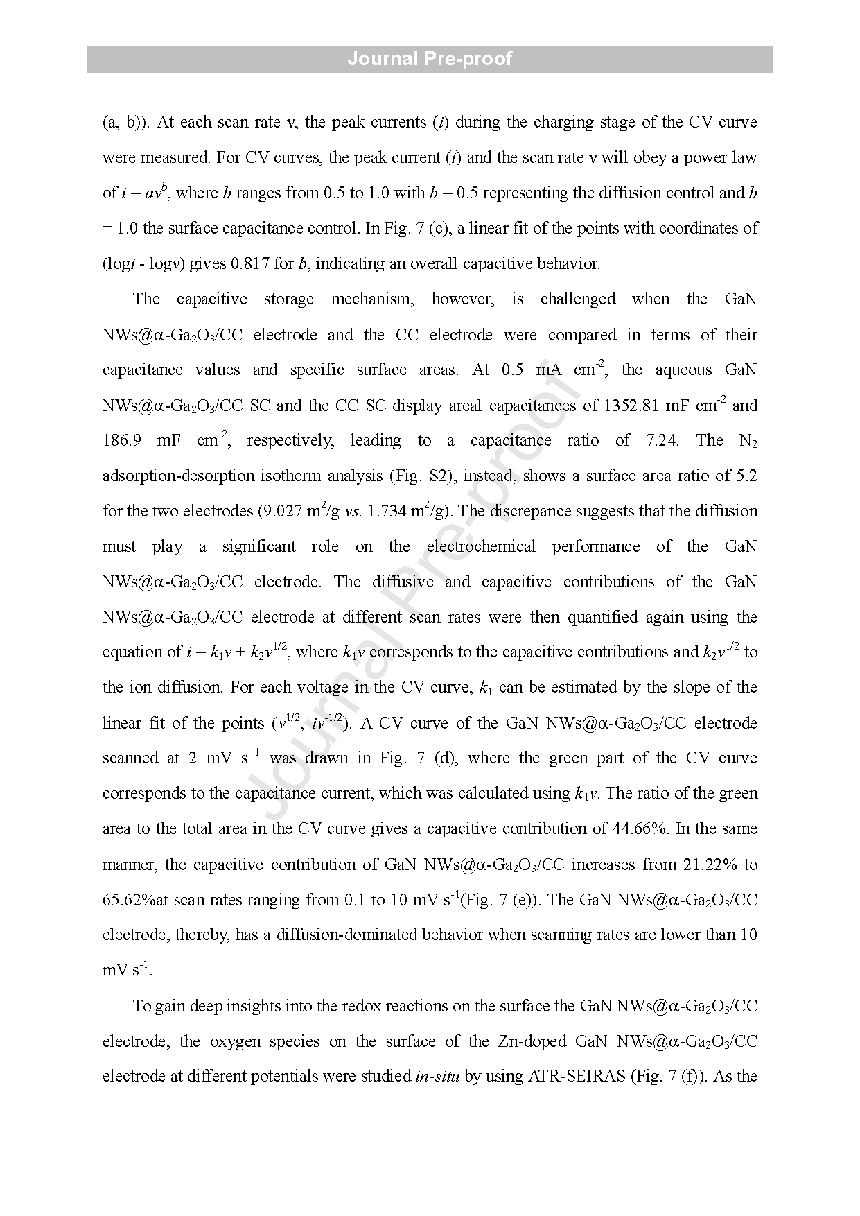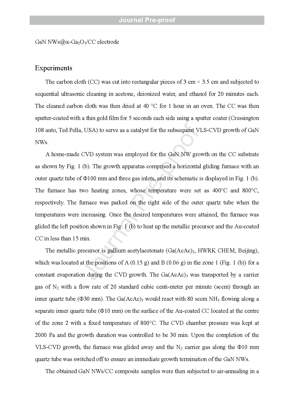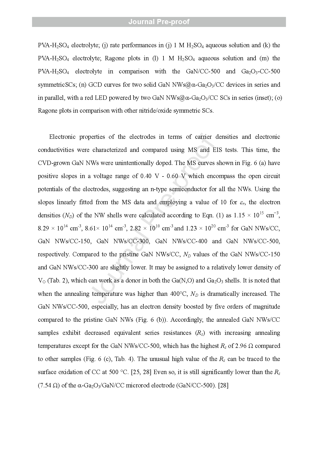 • 在碳布基底上成功制备了具有 GaN NWs@α-Ga2O3 结构的超级电容器电极。