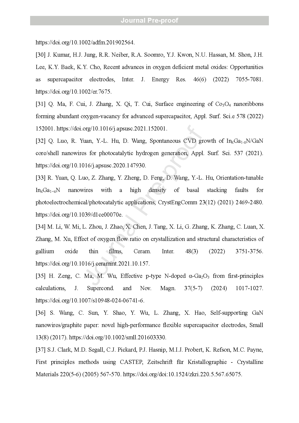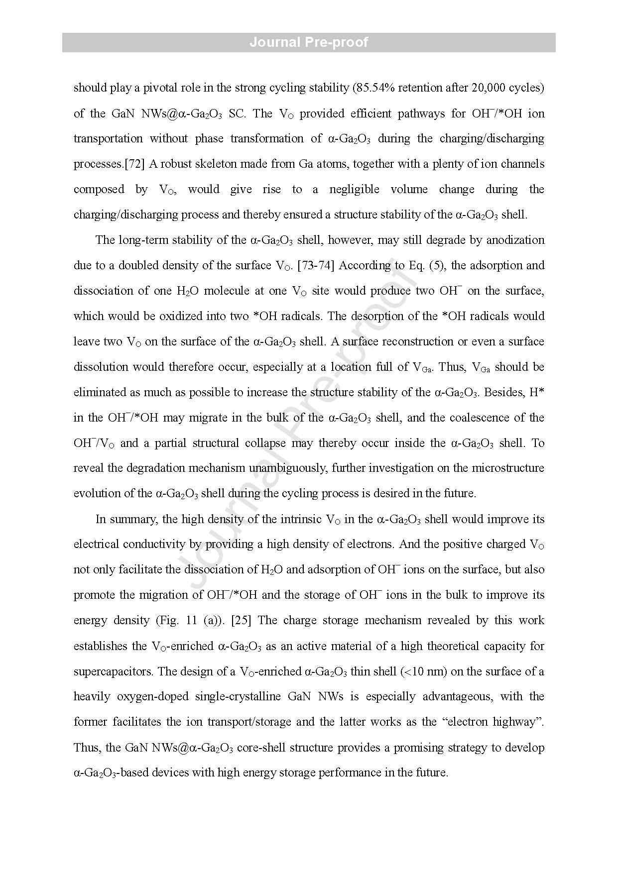 【会员论文】CEJ丨厦门理工学院:在氮化镓纳米线表面构建富氧空位α-Ga₂O₃壳层以增强OH⁻传输与储存,用于超级电容器