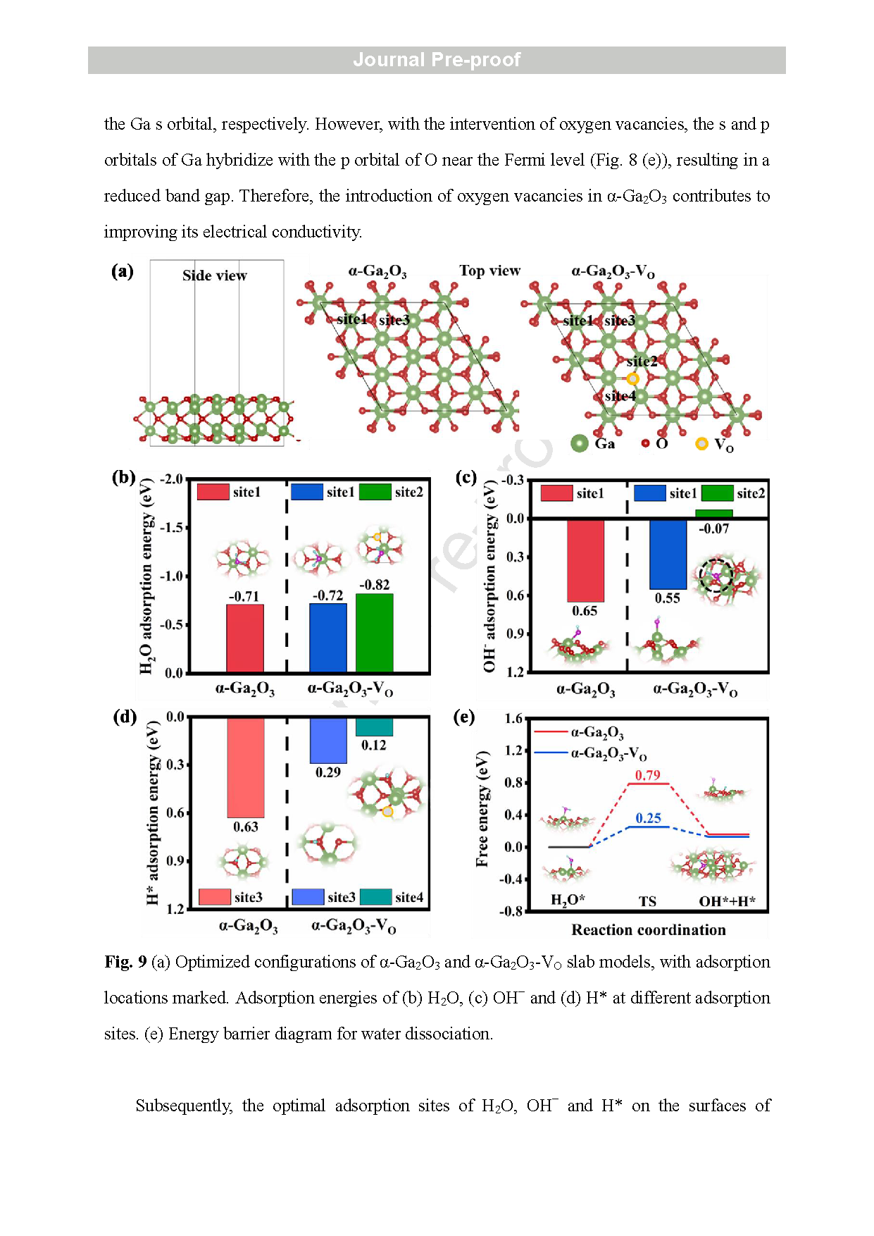 • α-Ga2O3 外壳中的氧空位(VO)促进了 OH⁻ 在表面的吸附以及 OH⁻/*OH 在体相中的扩散。