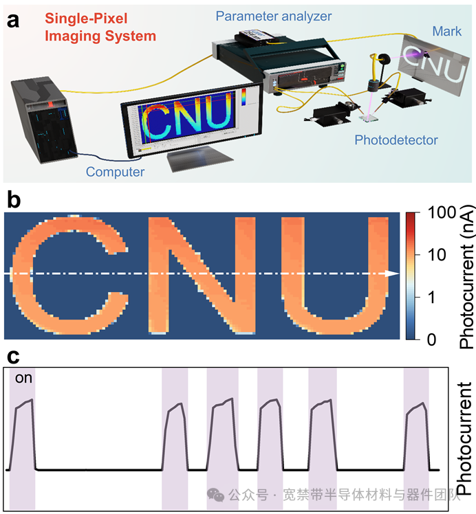 Fig. 5. Ultraviolet imaging verification of the Gr/β-Ga2O3 ultraviolet photodetector operating as a photoconductor at 12 V.