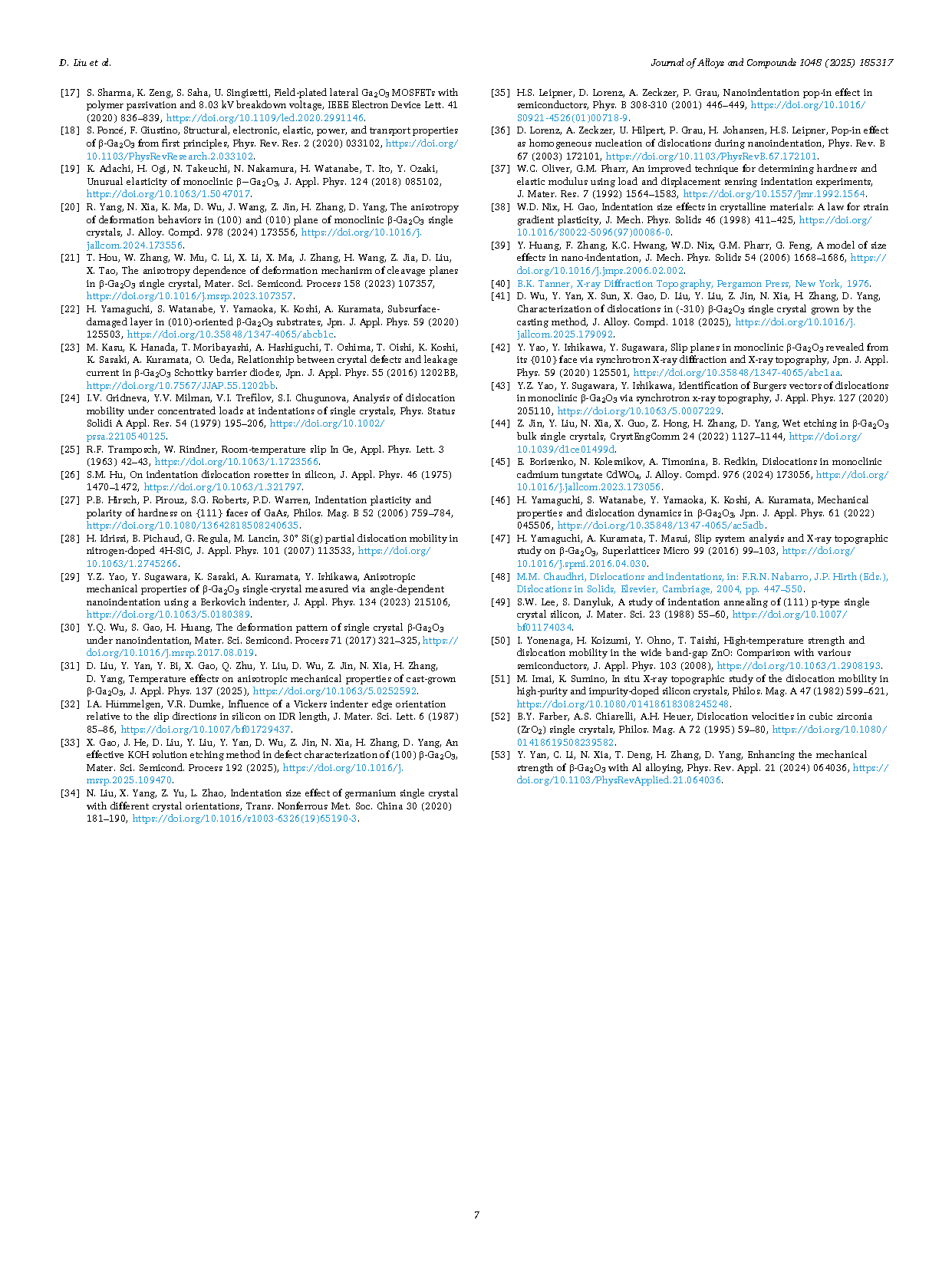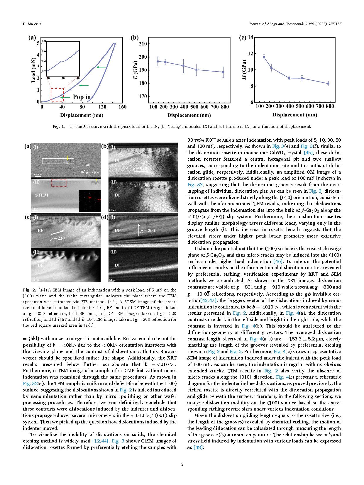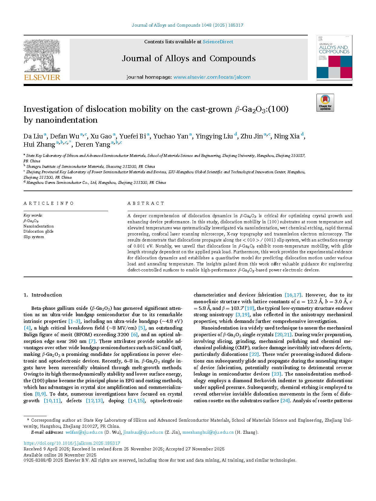 【国内论文】JAC丨浙江大学杨德仁院士、张辉教授团队:纳米压痕法研究铸造生长β-Ga₂O₃(100)晶面位错迁移性