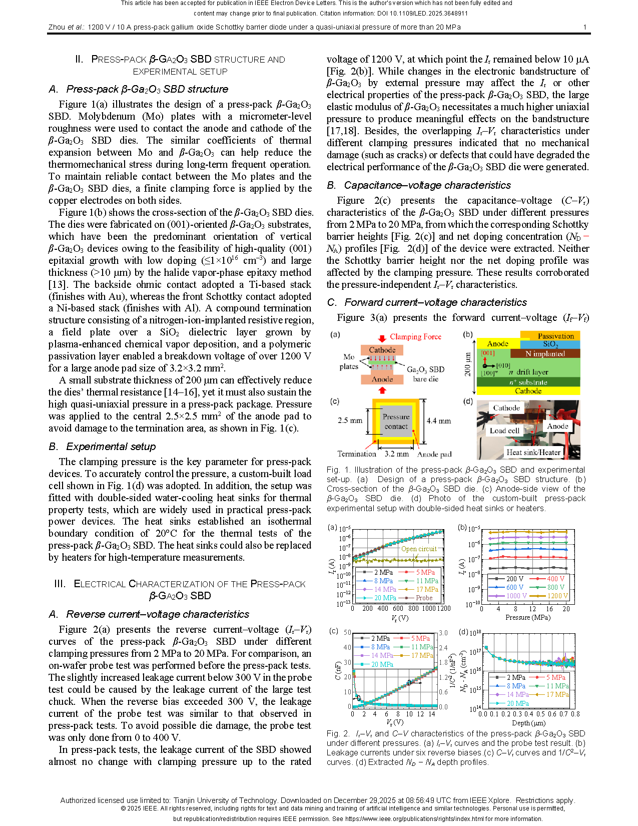 •首次关于 β-Ga2O3 功率器件能够承受压接式封装所需高压力的报道。