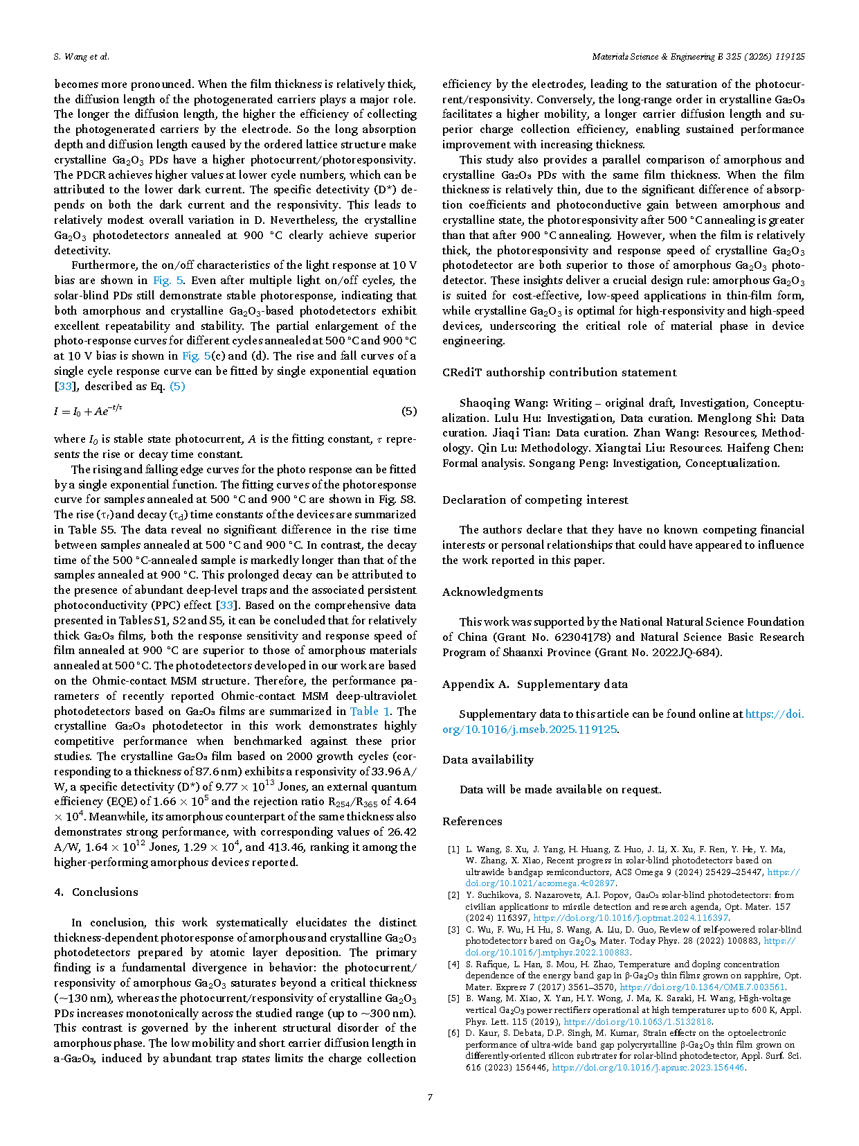• 首次观测到非晶态 Ga2O3 薄膜随厚度增加出现光响应饱和现象。