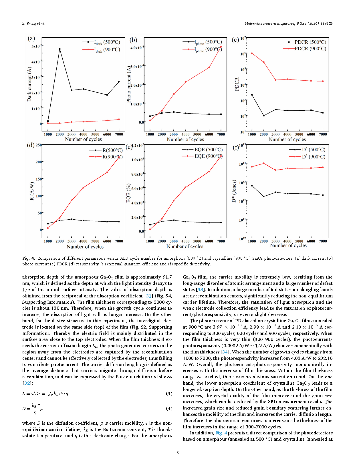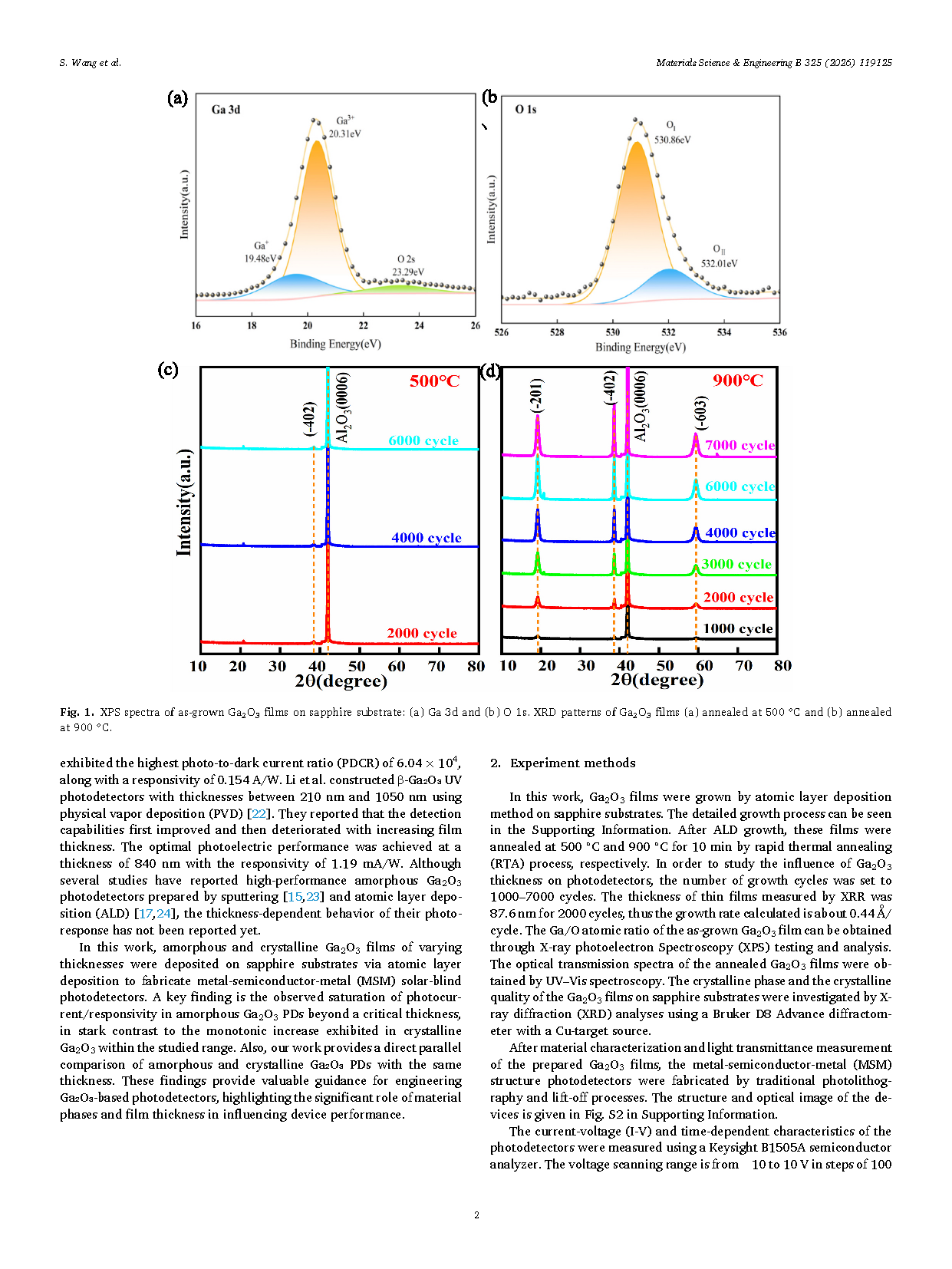 • 在广泛的原子层沉积周期范围内,对非晶态与晶态 Ga2O3 光电探测器进行了并行对比分析。
