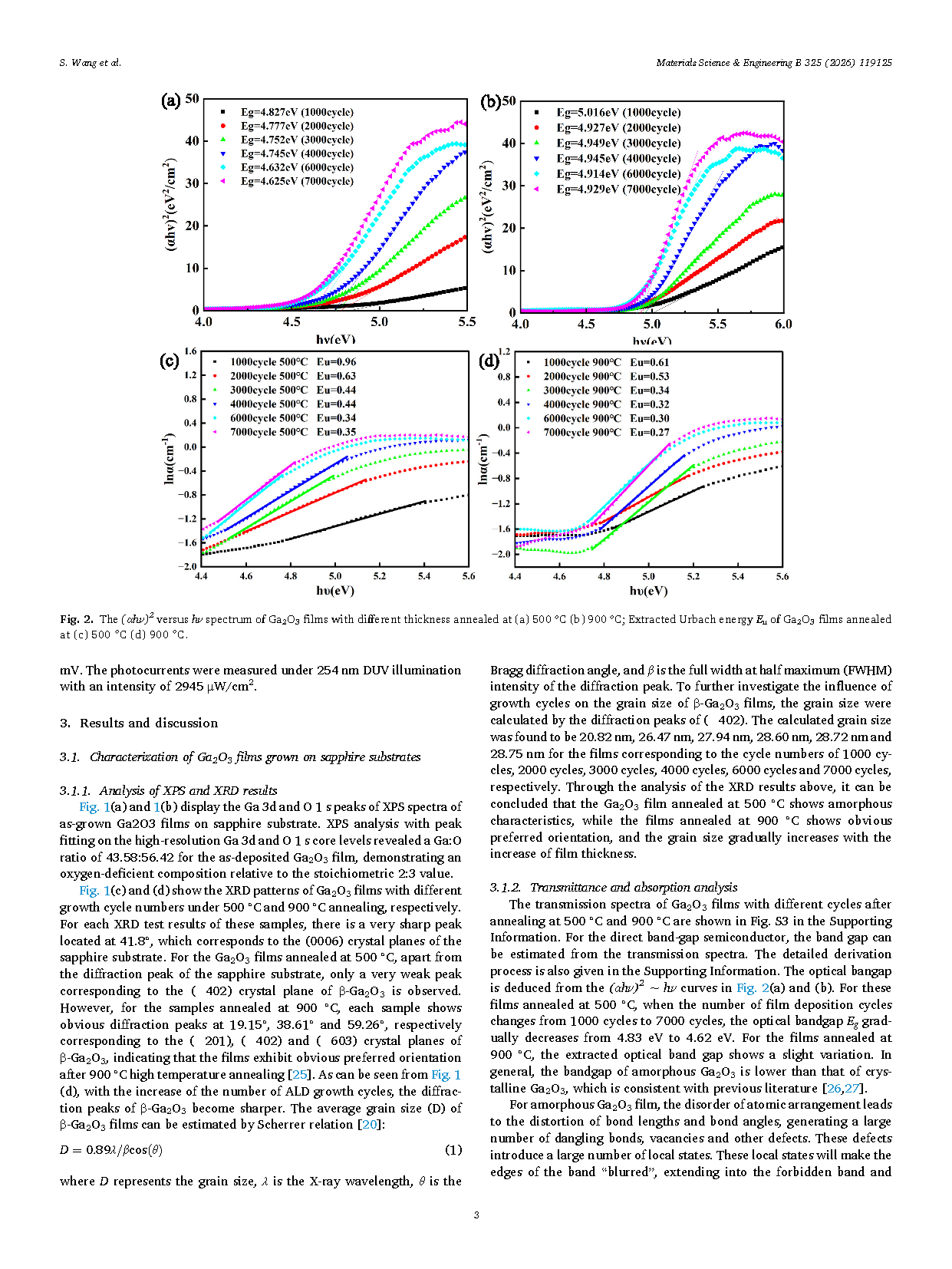 【国内论文】西安邮电大学:原子层沉积法制备的非晶和晶体Ga₂O₃薄膜中生长周期数对日盲光响应的影响