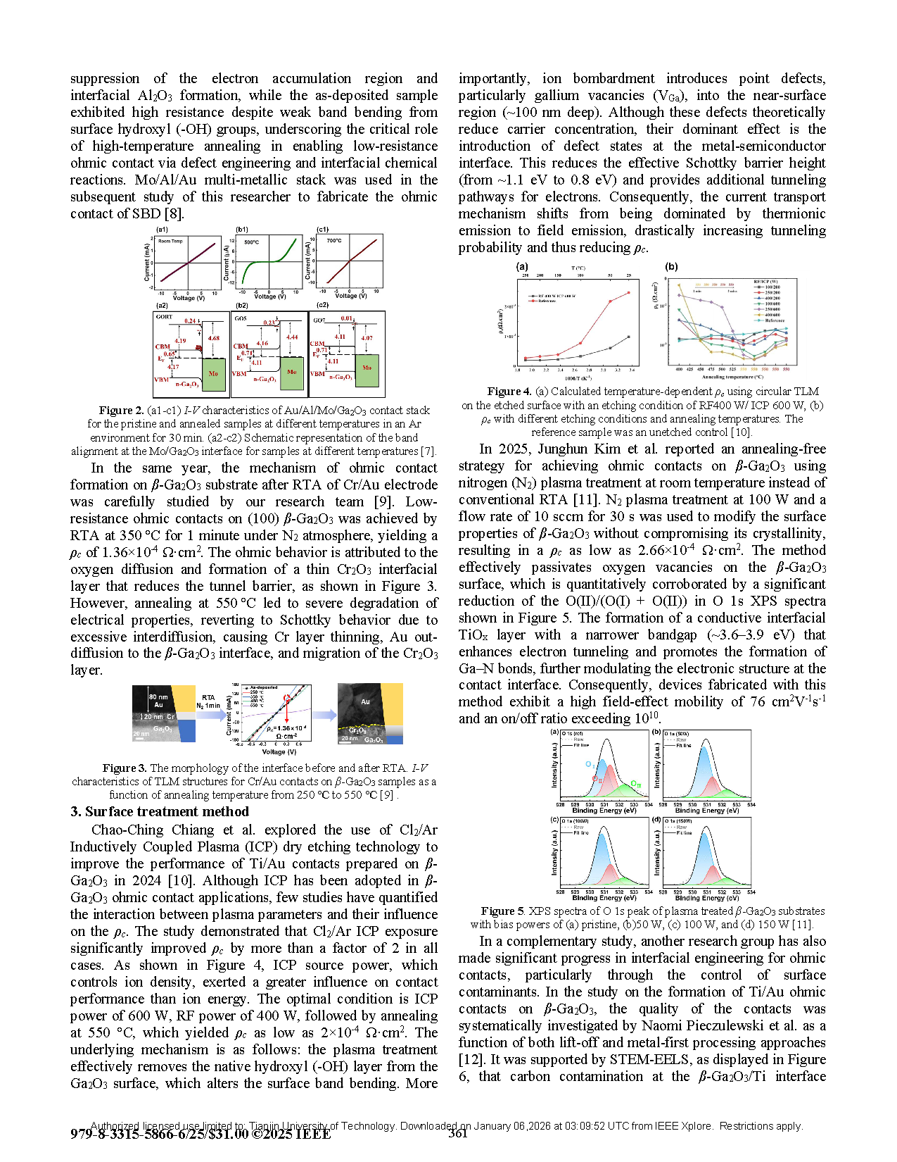 本综述通过探索四条战略路径——创新退火技术、先进表面处理、多层电极设计及离子注入,系统性地整合了近期在克服 β-Ga2O3 低电阻接触形成这一核心挑战方面的关键进展。值得注意的是,实现低电阻接触依赖于对金属/β-Ga2O3 界面进行有针对性的工程设计。除整合研究成果外,本工作还为基础研究与器件实际制造提供了宝贵的指导框架。这种全面认知标志着实现高性能 β-Ga2O3 基功率电子器件迈出了重要一步。
