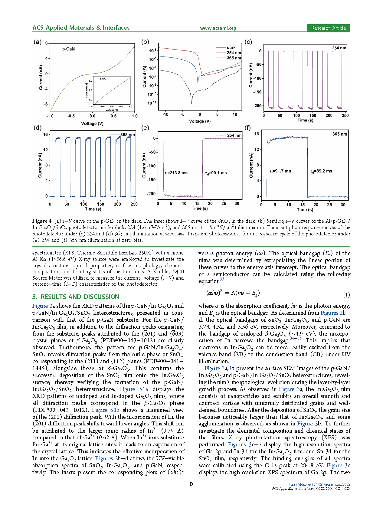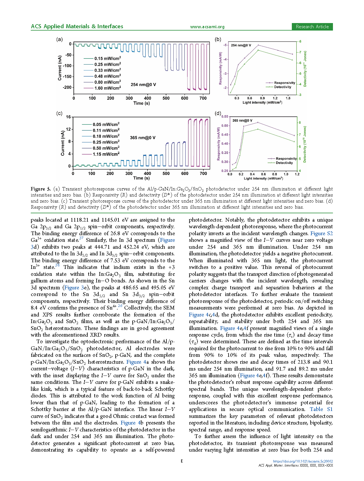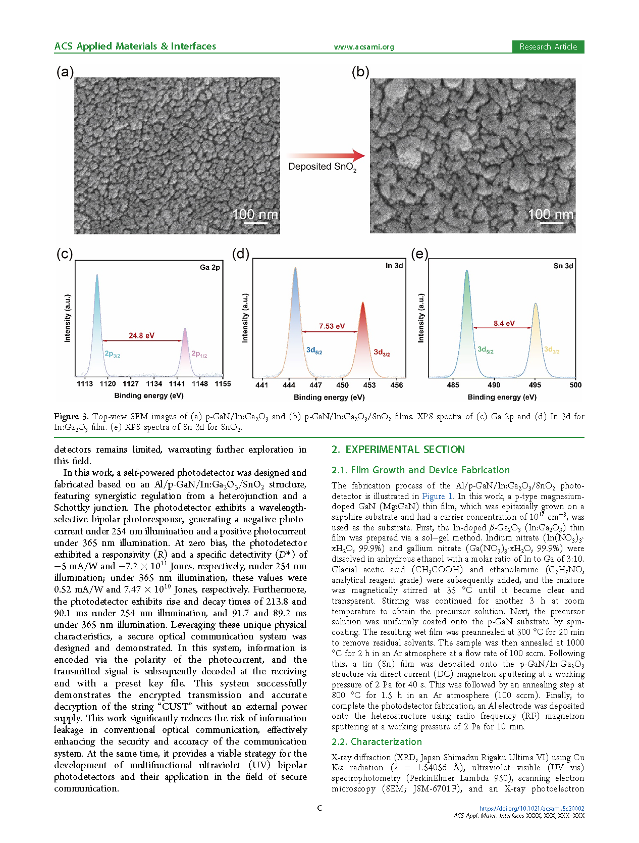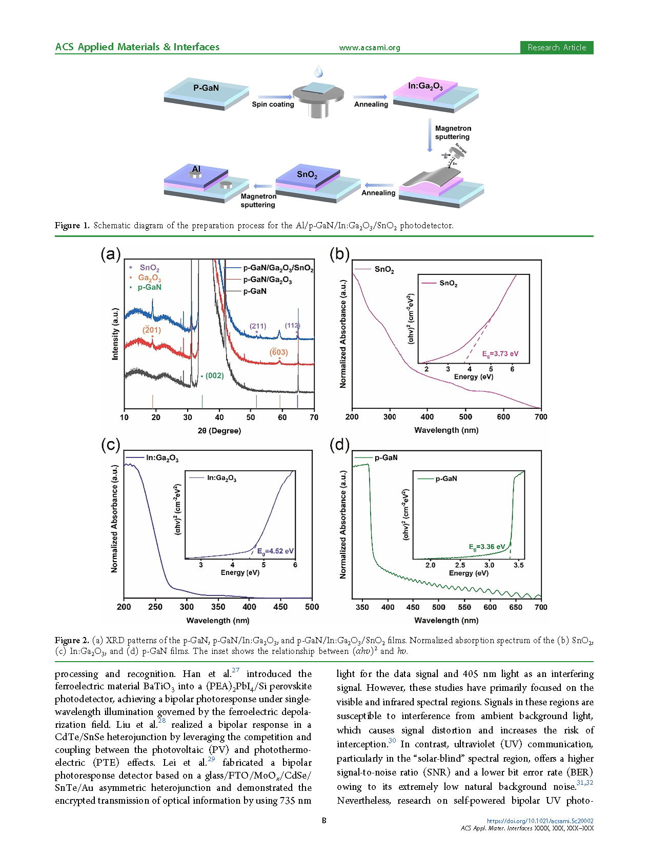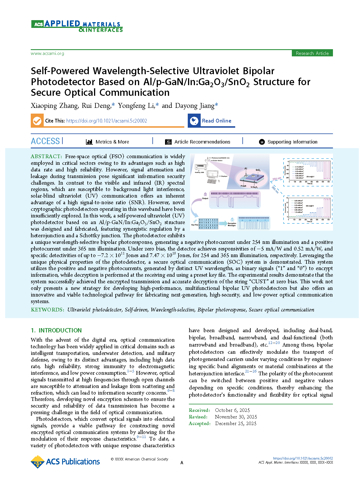 【国内论文】ACS AMI丨长春理工大学:基于Al/p-GaN/In:Ga₂O₃/SnO₂结构的自供电波长选择性紫外双极光探测器在安全光通信中的应用