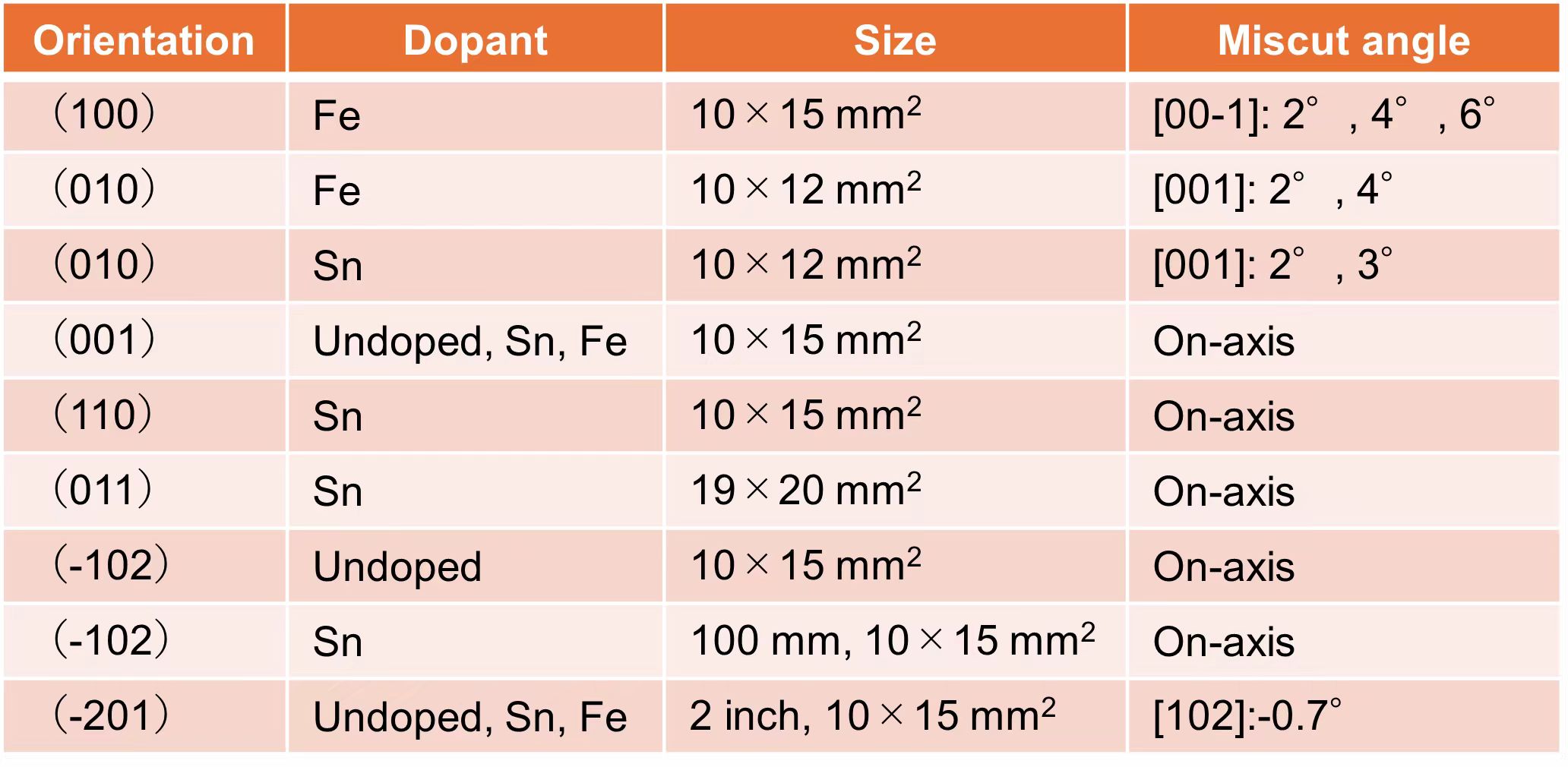 基于上述技术发展趋势与应用需求变化,NCT进一步完善并扩展了氧化镓晶圆产品线,正式构建起面向学术界与产业界、可稳定供应多种非(001)晶面方向晶圆的供应体系,为不同研究路径和器件方案提供更多材料选择。