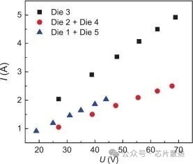 图 4 不同芯片热源的电压和电流供电条件:展示了各个芯片加热器的电压和电流供电情况。