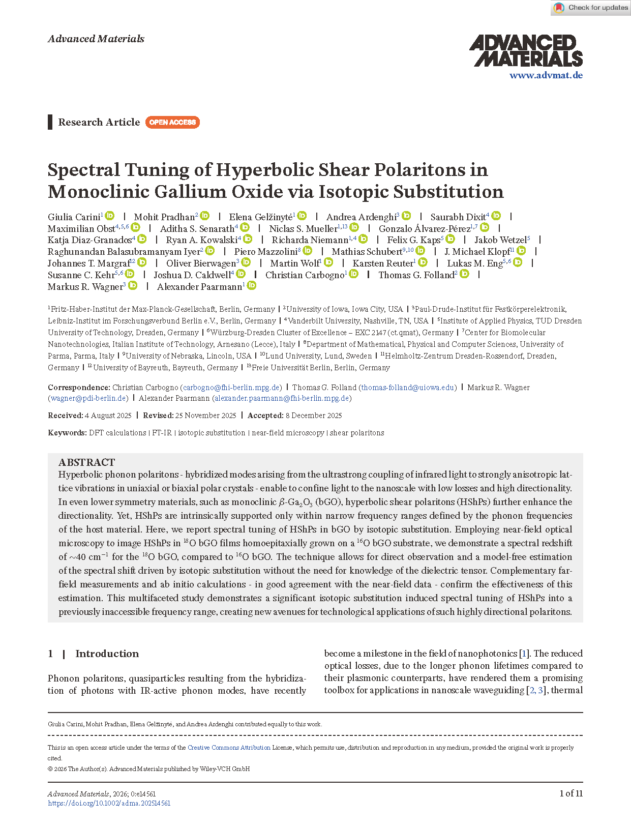 【国际论文】Adv. Mater丨德国马克斯·普朗克学会弗里茨·哈伯研究所:通过同位素替代实现单斜相氧化镓中双曲剪切极化激元的光谱调控