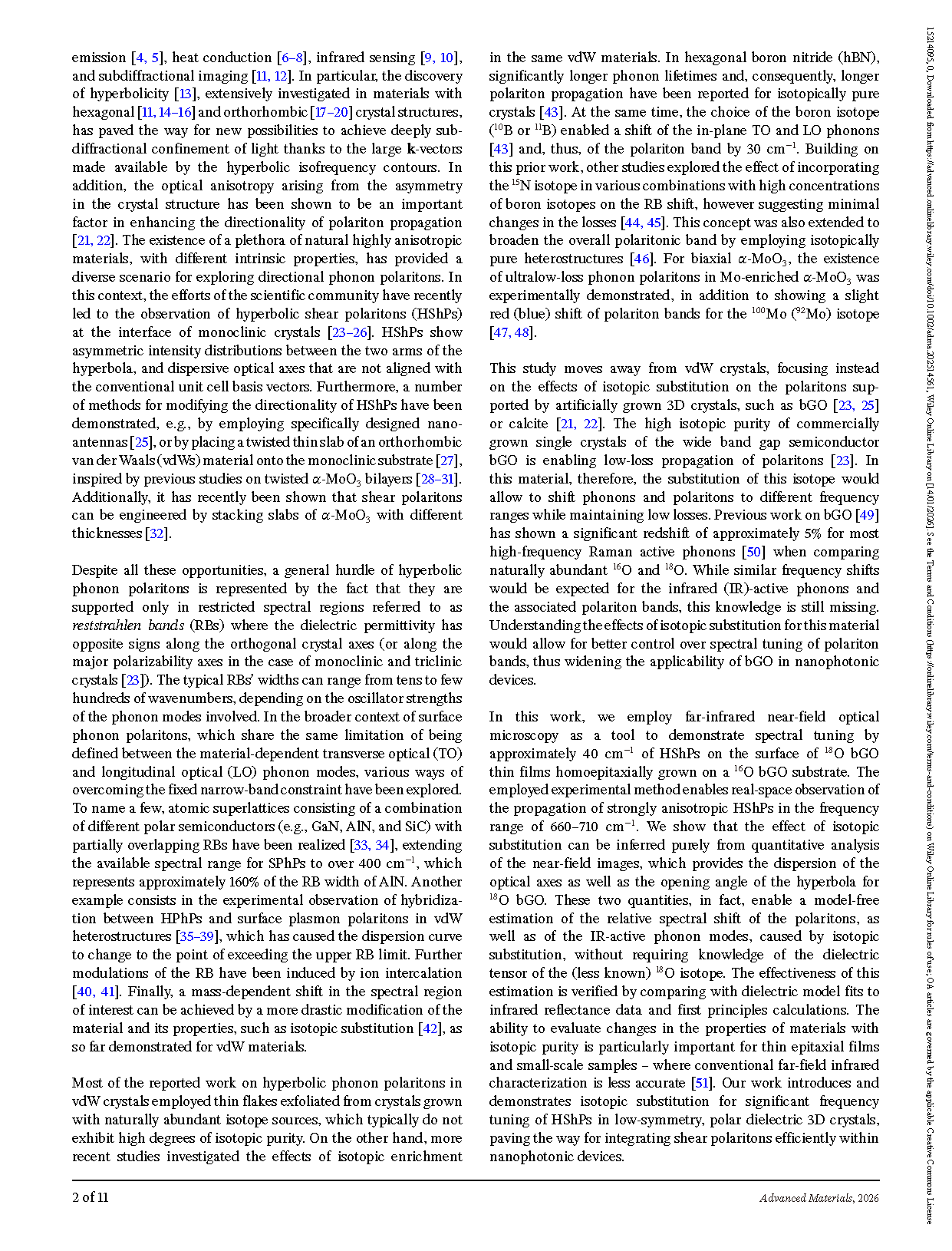 由德国马克斯·普朗克学会弗里茨·哈伯研究所的研究团队在学术期刊 Advanced Materials 发布了一篇名为 Spectral Tuning of Hyperbolic Shear Polaritons in Monoclinic Gallium Oxide via Isotopic Substitution(通过同位素替代实现单斜相氧化镓中双曲剪切极化激元的光谱调控)的文章。