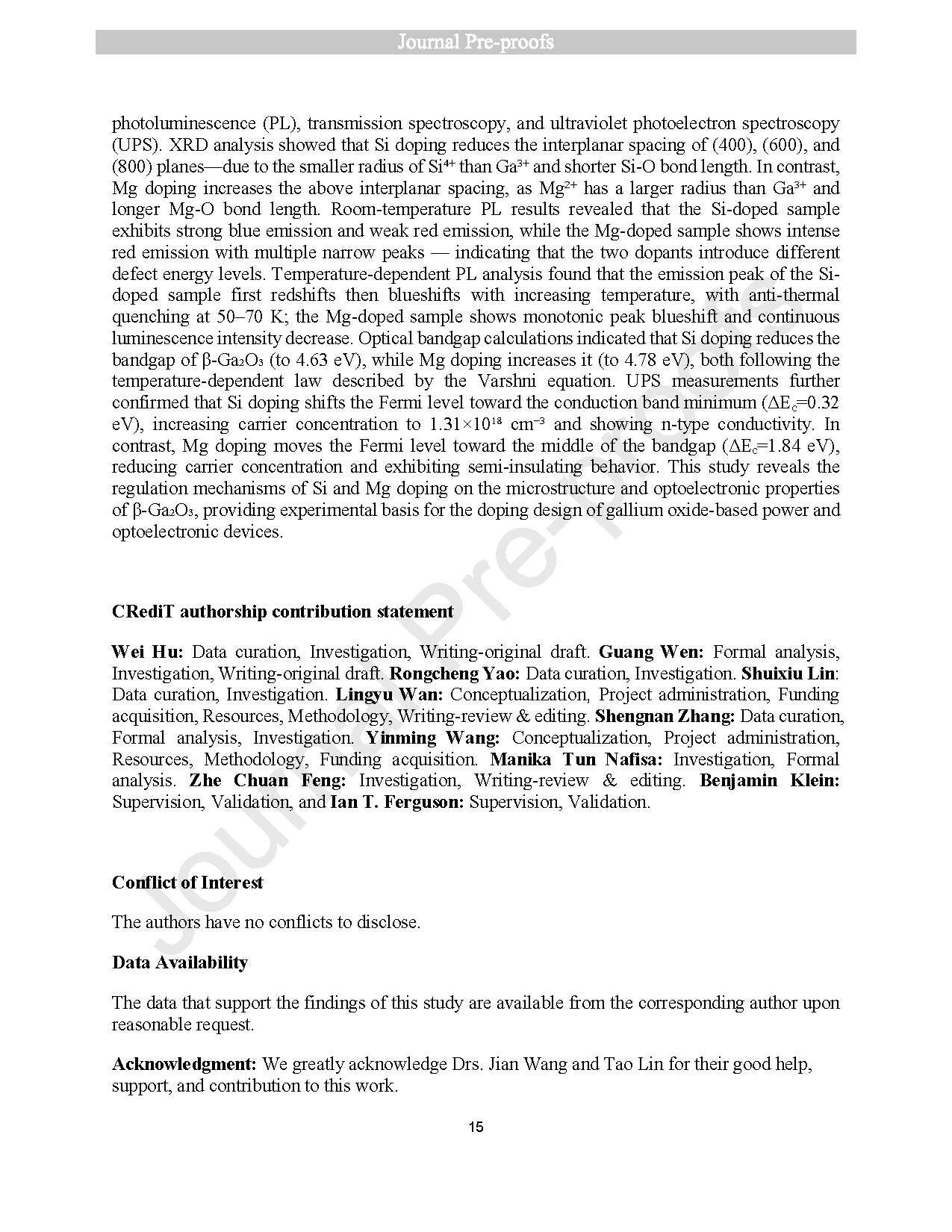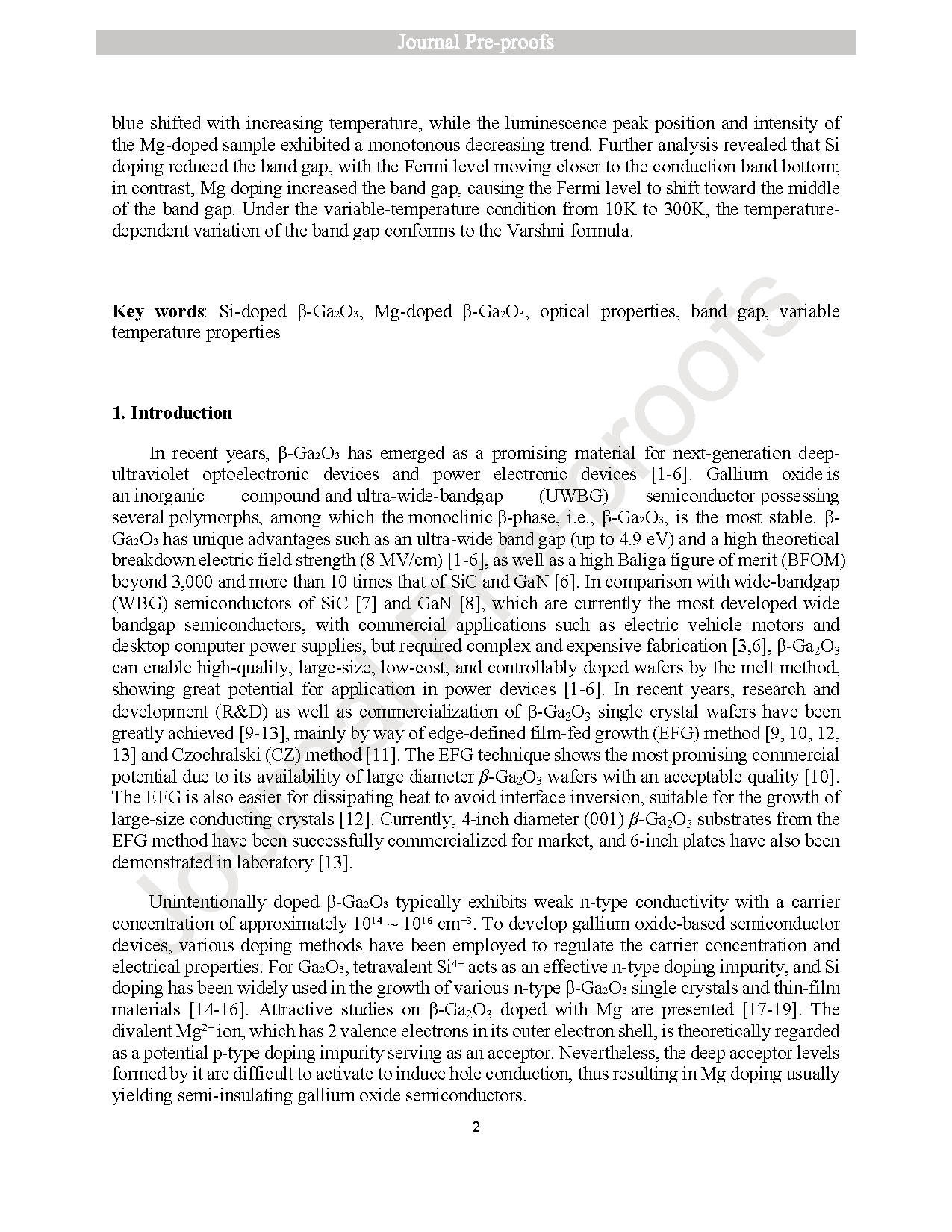 ● 比较 Si/Mg 掺杂对 β-Ga2O3 微观结构、带隙及温度依赖性特性的影响。