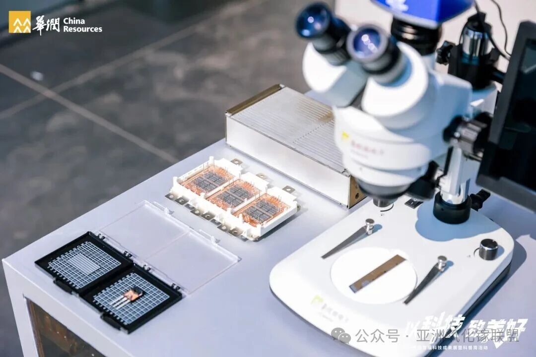 华润微电子作为集团科技与新兴产业板块重要组成,展区围绕“芯创前沿 科创领航”“芯链科创成果 赋能全链路”“芯启科创 赋能出行”三大主题,综合运用产品实物、模型演示、显微镜互动等多种形式,生动呈现了公司在前沿技术突破、全产业链自主可控以及汽车电子应用等方面的创新成果与实践路径。