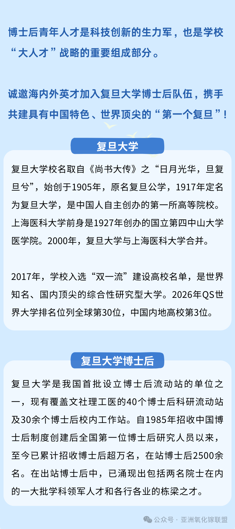 【人才库】复旦大学2026年全职博士后招聘启动