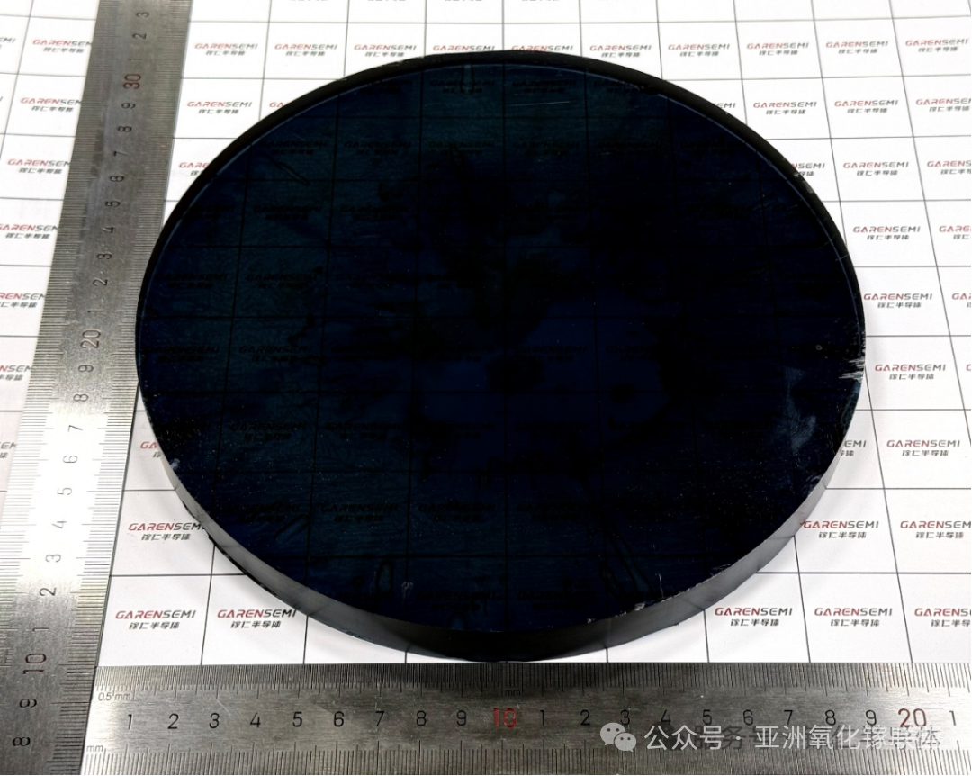 2025年6月,镓仁半导体在氧化镓大尺寸晶体生长与衬底加工上取得突破,利用自主研发的VB法设备成功制备出100毫米(010)氧化镓单晶衬底。经表征测试,衬底无孪晶,XRD半高宽小于50 arcsec,表面粗糙度小于0.1 nm,质量达到国际先进水平,实现了该尺寸氧化镓衬底的国际首次报道。