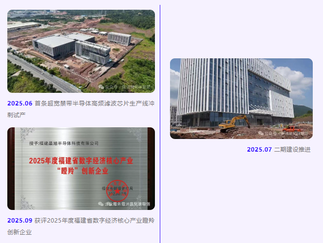 2025年6月,福建晶旭半导体二期项目正在加速建设,将建成全球首条氧化镓压电薄膜高频滤波芯片生产线,年产400kk,填补国内空白并推动地方新材料产业发展。