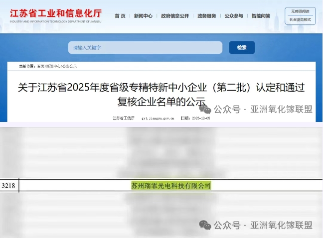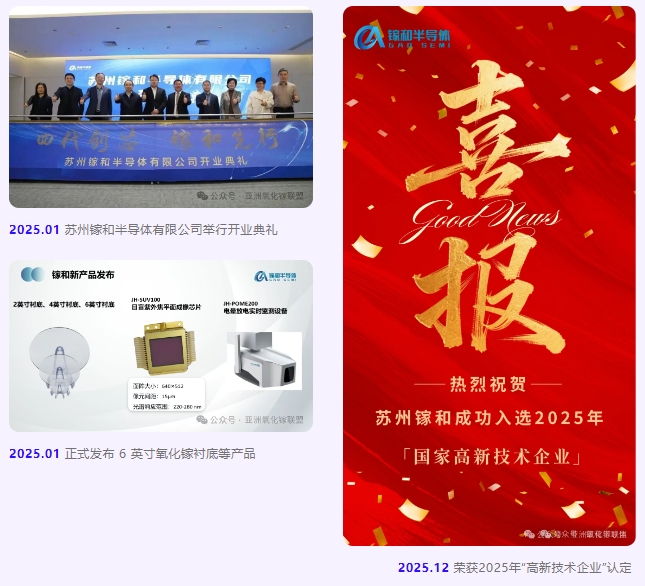 2025年12月,苏州镓和半导体有限公司被列入江苏省首批高新技术企业备案公示,正式获得全国高新技术企业认定,彰显公司在氧化镓技术研发和产业化领域的创新实力与行业影响力。