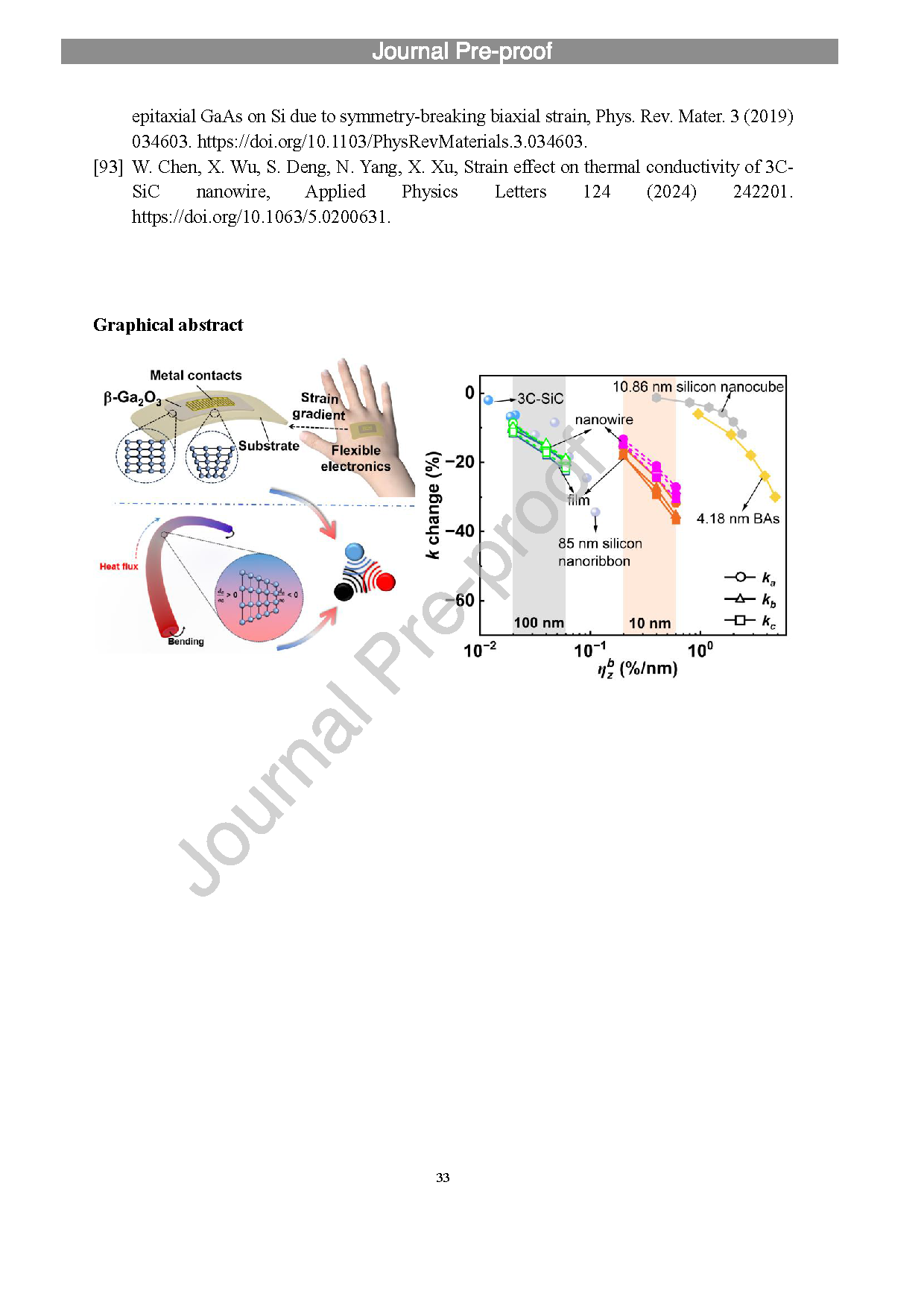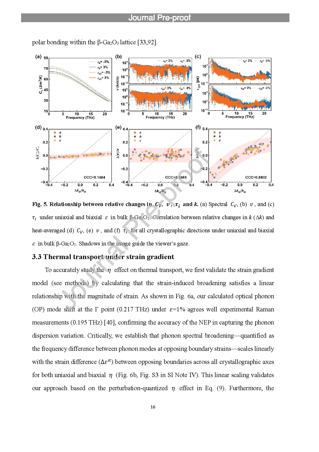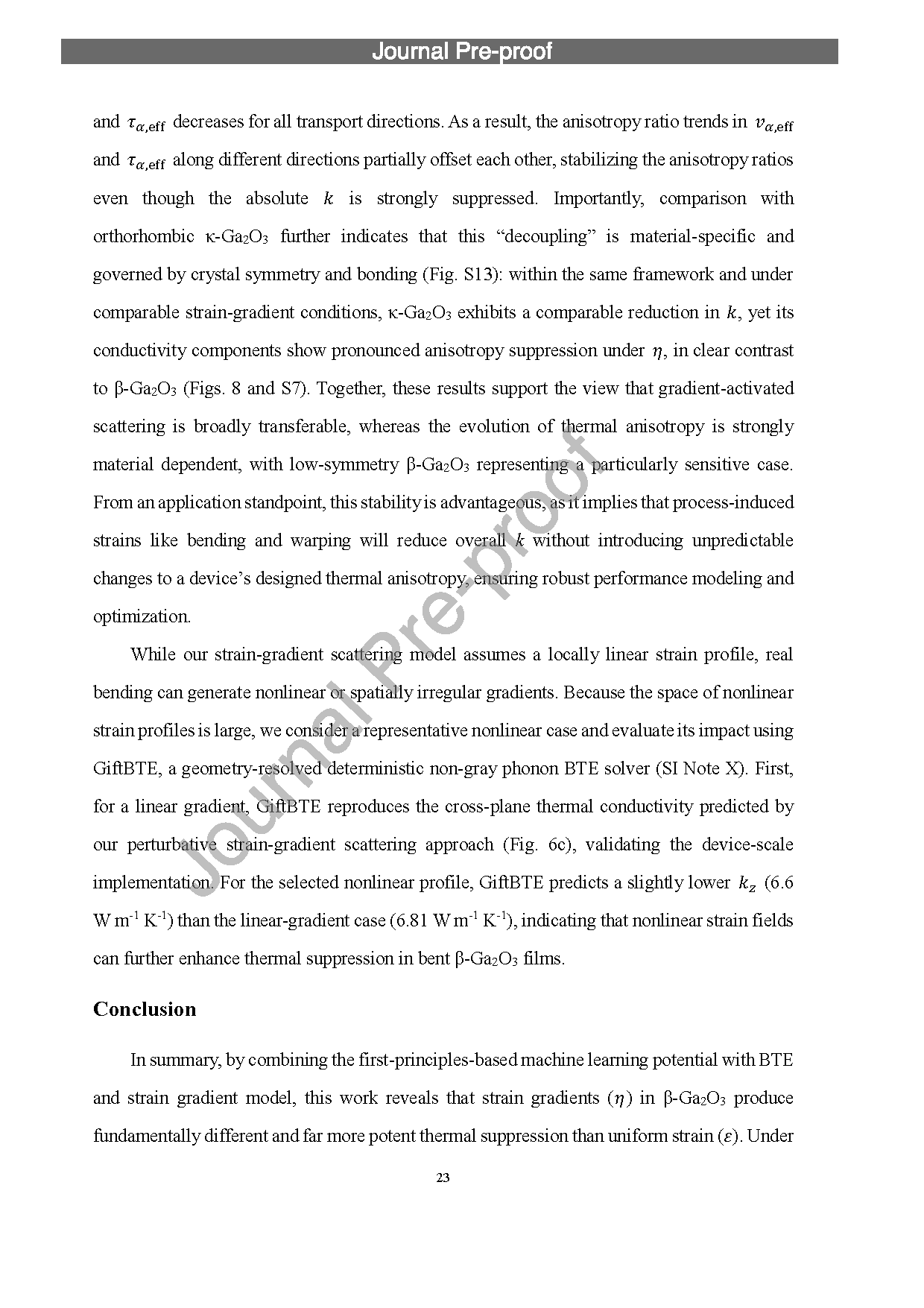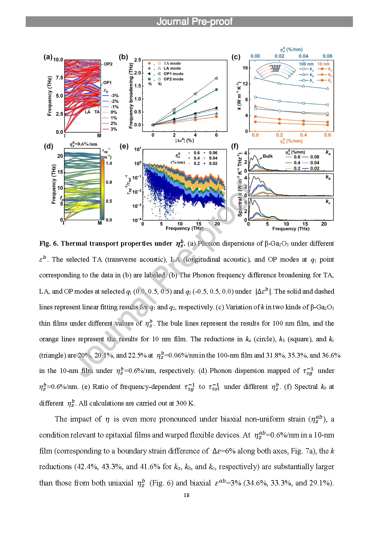1、揭示应变梯度对 β-Ga₂O₃ 热导率的抑制效应显著强于均匀应变,是影响热输运的主导因素。