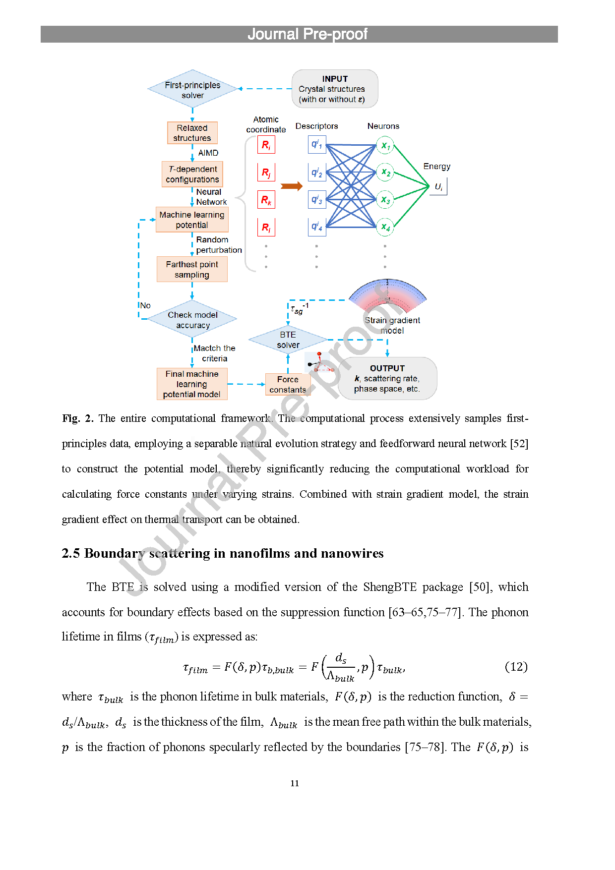2、构建结合机器学习势函数与声子 BTE 的高精度计算框架,实现纳米尺度应变梯度下的热输运研究。