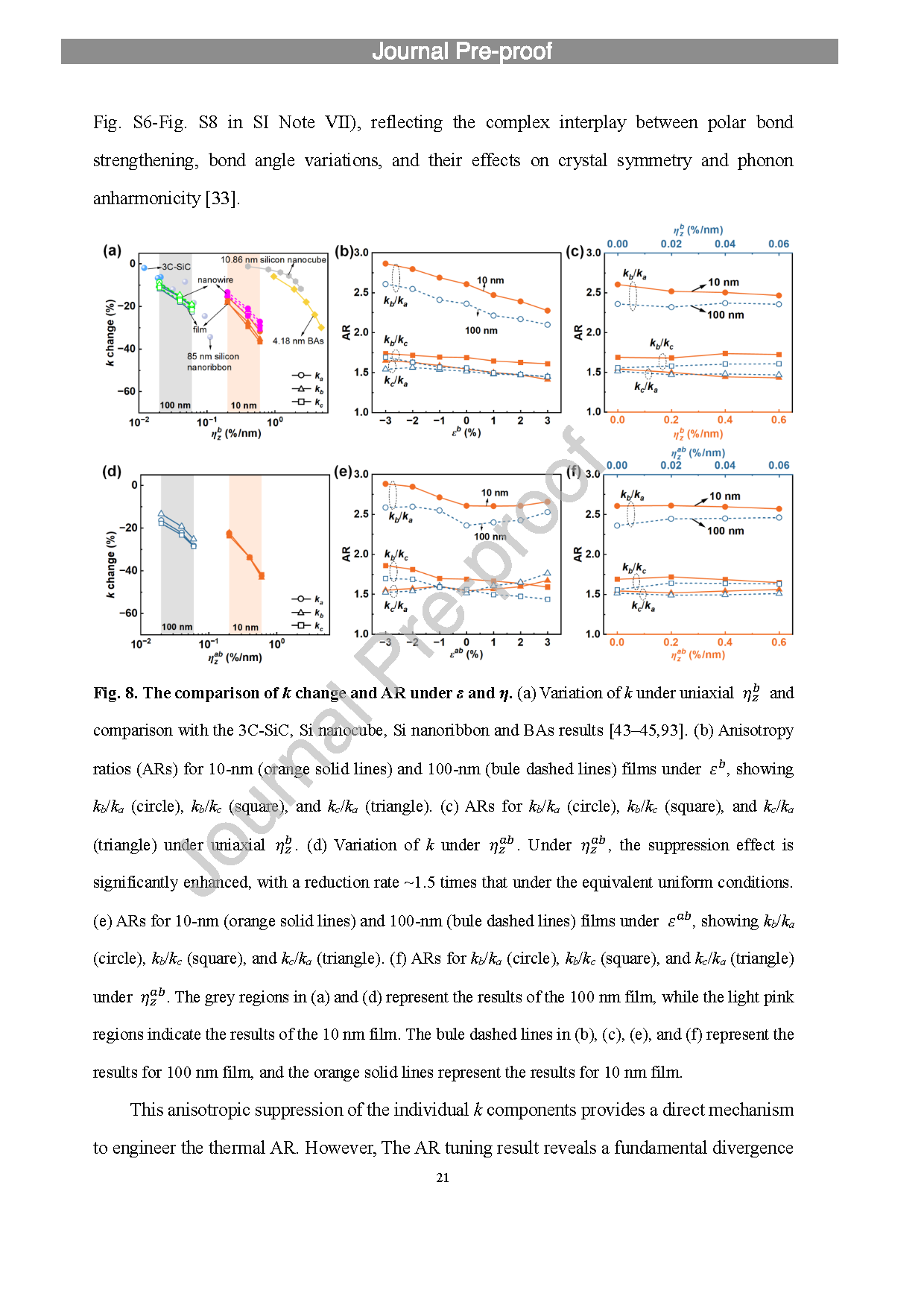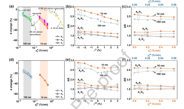 4、发现应变梯度显著降低热导率,但对热各向异性影响较弱,区别于均匀应变效应。