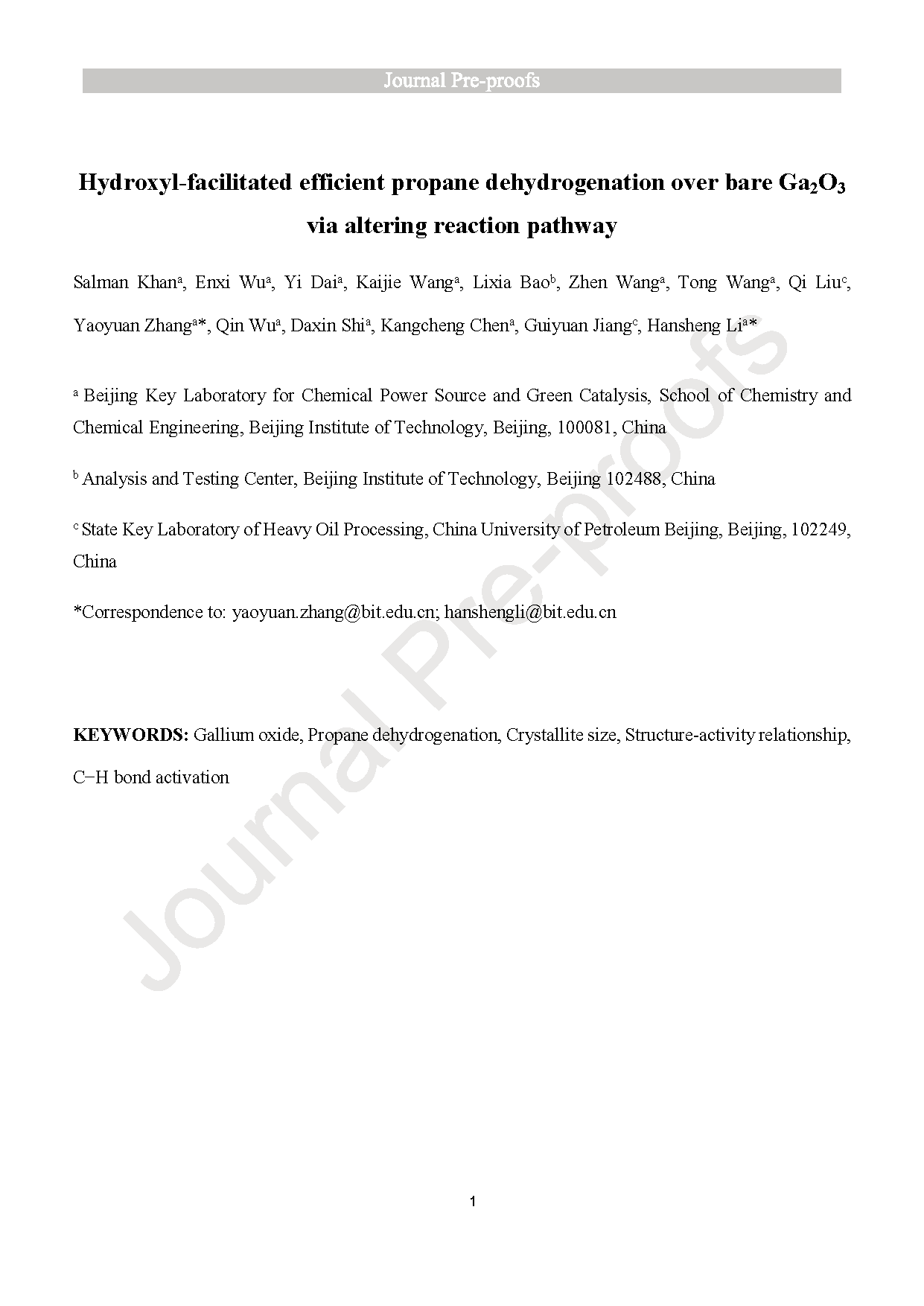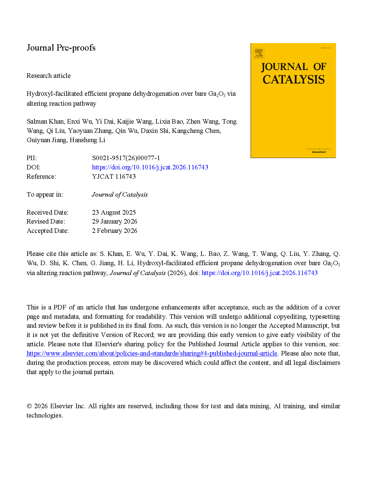【国内论文】JOC丨北京理工学院:羟基促进本征 Ga₂O₃ 高效丙烷脱氢反应途径调控机制