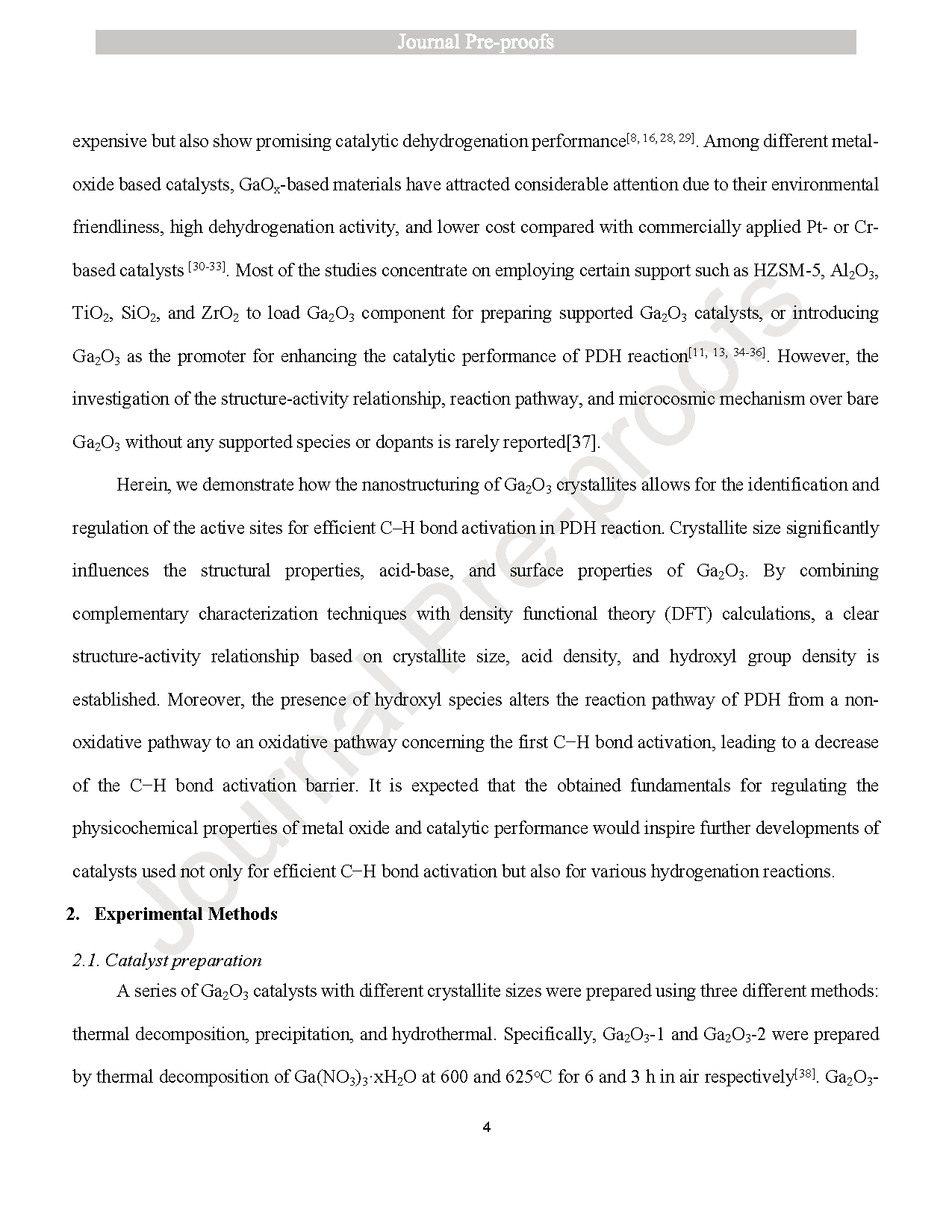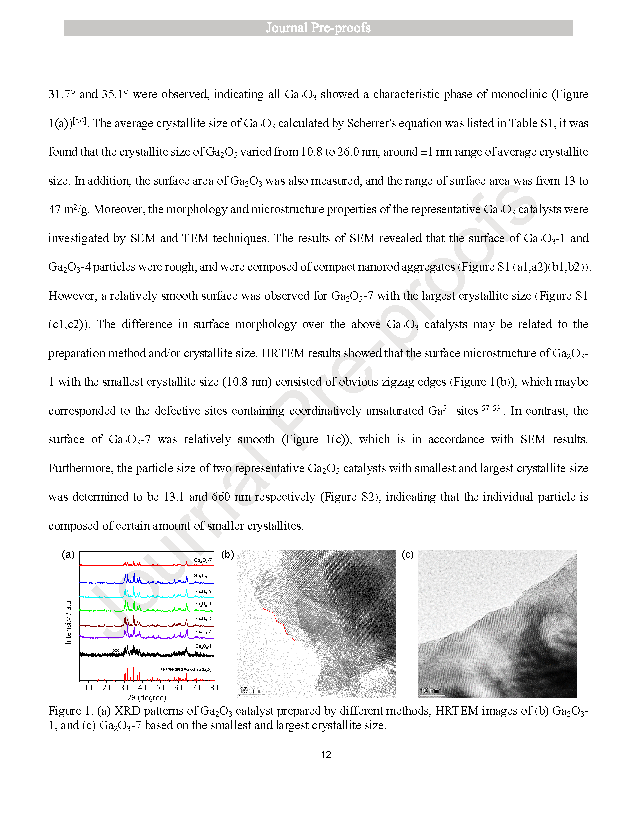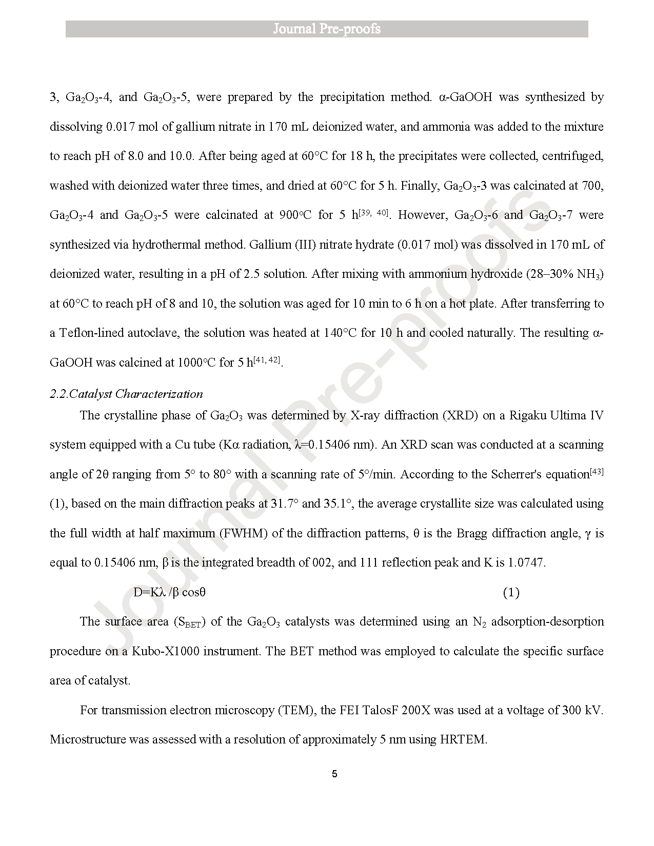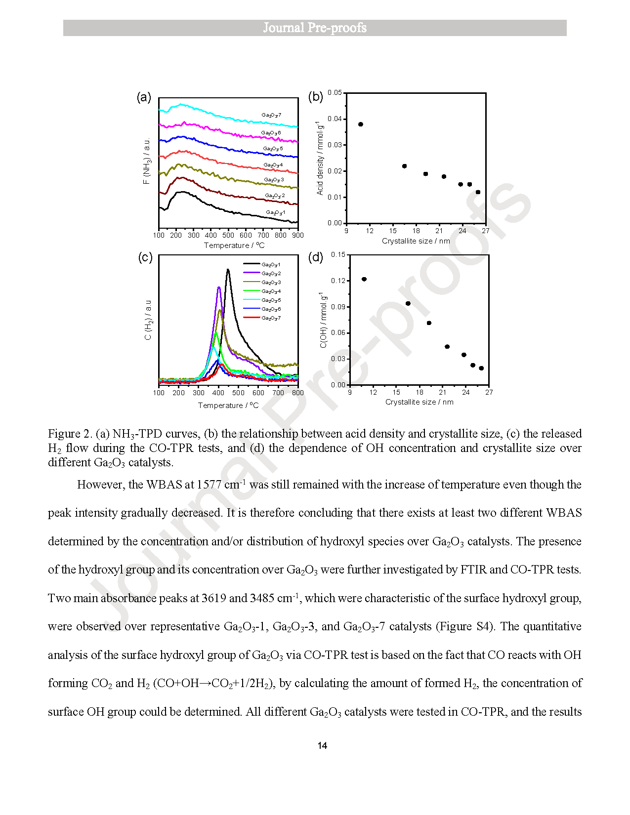 • 通过不同合成方法制备了一系列具有不同晶粒尺寸的本征 Ga2O3 催化剂。