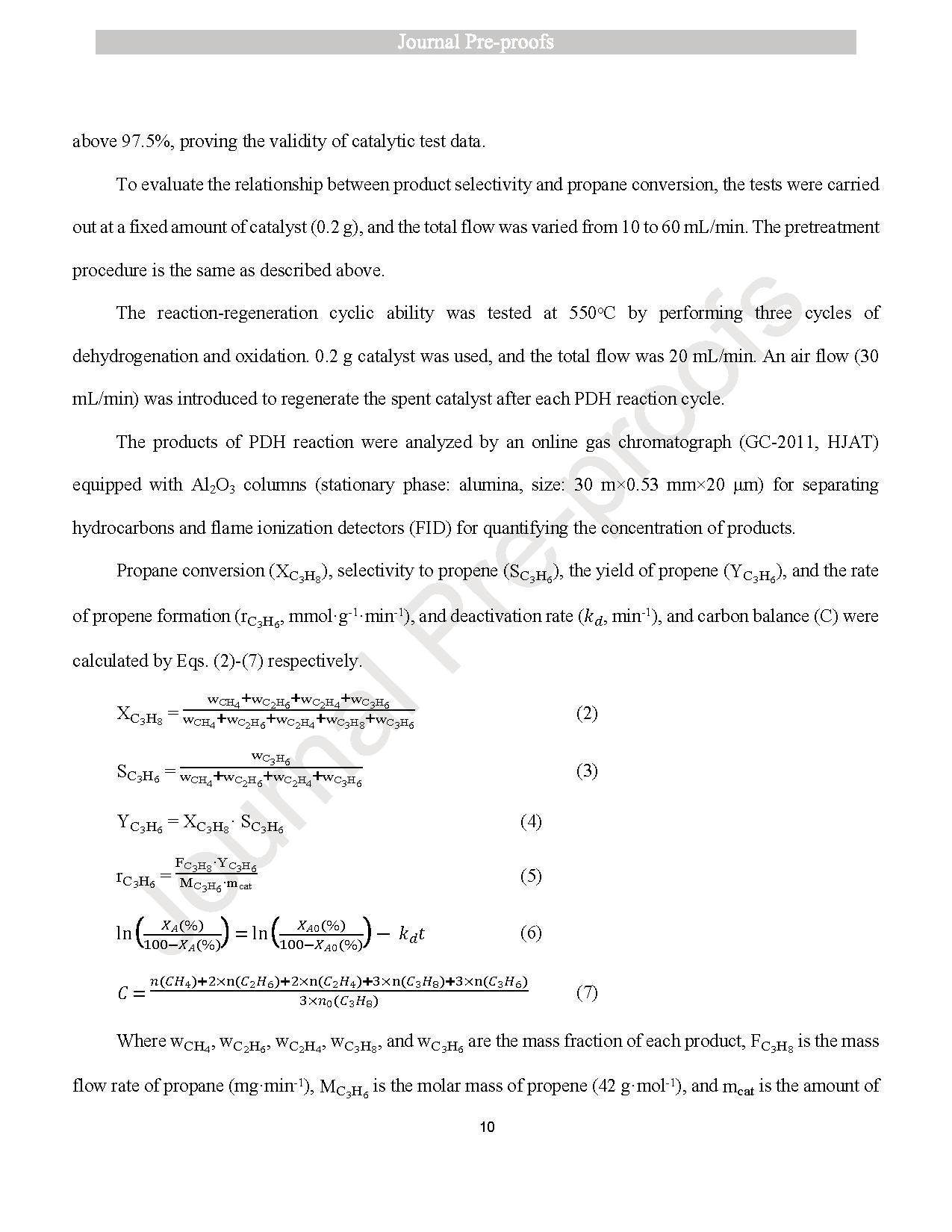 本研究通过结合多种表征手段与密度泛函理论(DFT)计算,系统探讨了未修饰氧化镓(Ga2O3)在丙烷脱氢(PDH)反应中的结构–活性关系。结果表明,晶粒尺寸对 Ga2O3 的微观结构、酸性以及表面性质具有显著影响。晶粒尺寸越小,其酸性位点和羟基物种浓度越高,因此 PDH 反应中丙烯的生成速率越高。Ga2O3 表面羟基的存在能够在初始阶段改变PDH反应的反应路径,即将首个 C−H 键活化从非氧化路径转变为氧化路径,从而显著降低 C−H 键活化的反应能垒。此外,晶粒尺寸较小的 Ga2O3 具有较高浓度的氧空位,形成 Ga2O3–Ov 位点,其表观活化能低于纯 Ga2O3 及 Ga2O3–H 表面。值得注意的是,不同晶粒尺寸的 Ga2O3 均表现出极高的丙烯选择性(>97%),且在较宽的丙烷转化率范围内裂解产物选择性较低。本研究有助于深入理解轻烷烃中的 C−H 键活化过程,并推动基于 Ga2O3 材料在 PDH 反应中的开发应用。