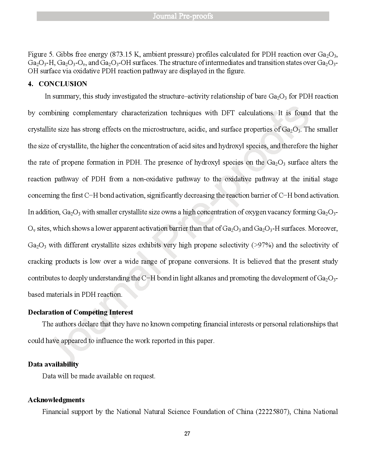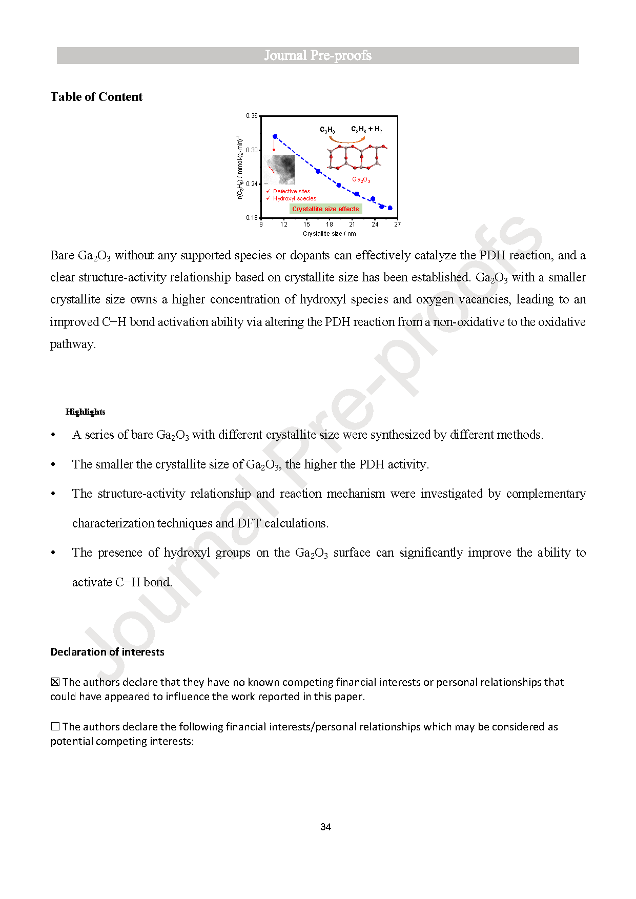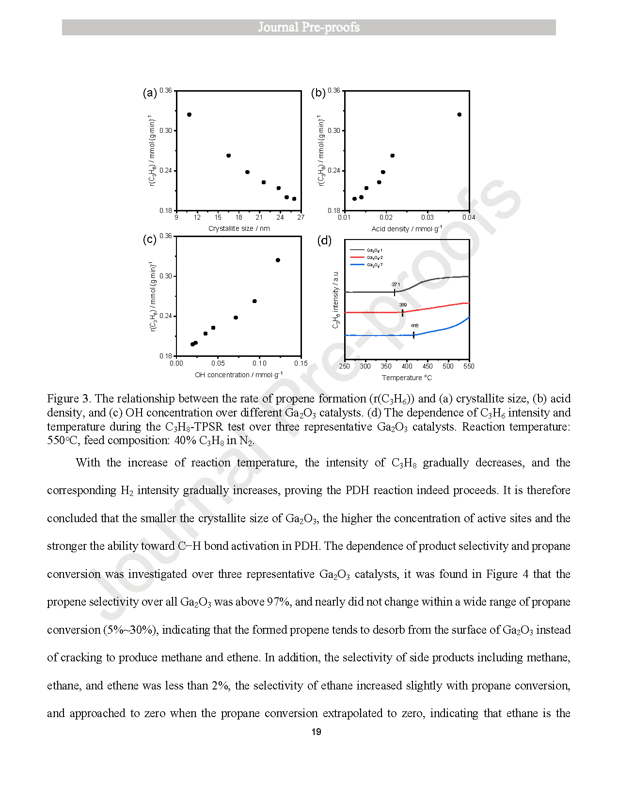 • Ga2O3 的晶粒尺寸越小,其丙烷脱氢(PDH)催化活性越高。