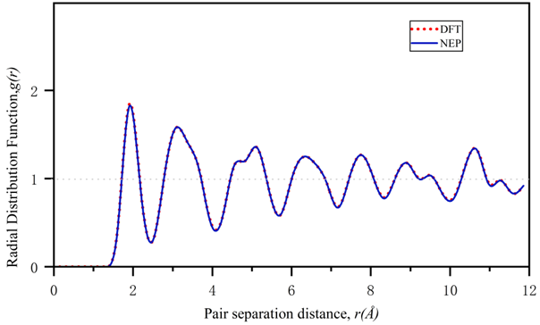 图2. Ga2构型的径向分布函数(RDF)在NEP与DFT计算中的对比。