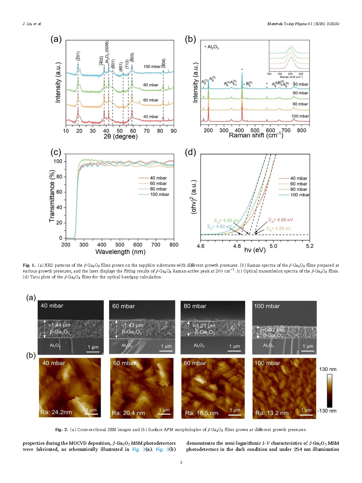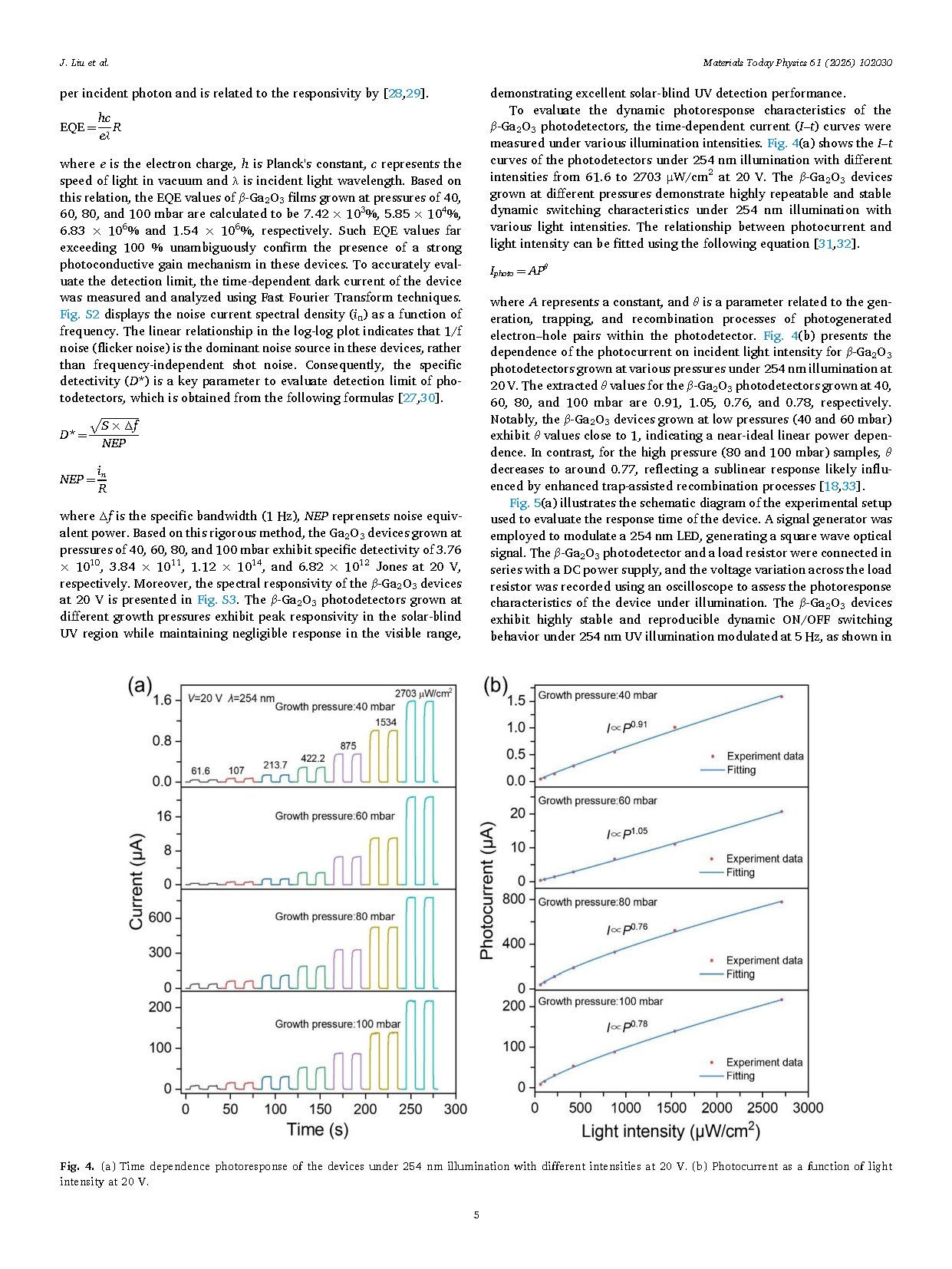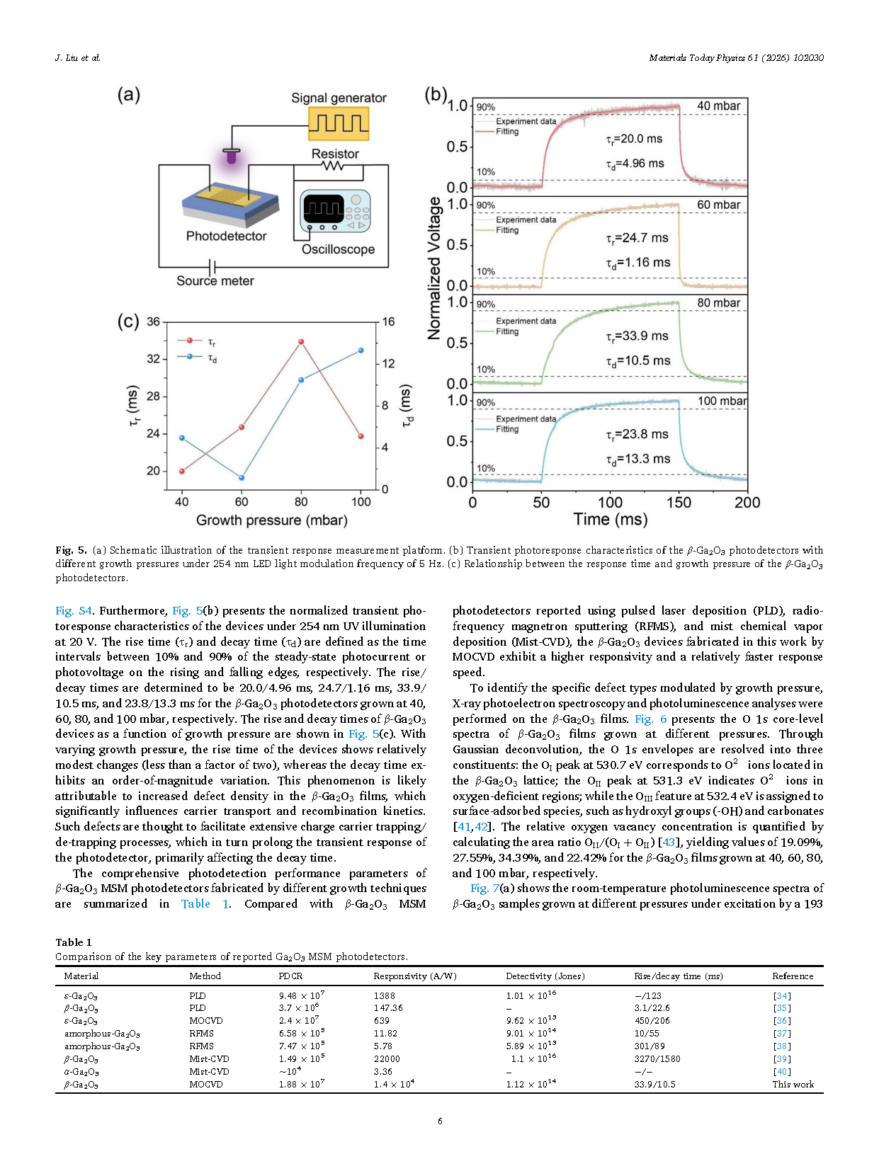 4、明确了最大化缺陷引入和器件性能的中间压力条件,提出通过原位缺陷工程系统调控 β-Ga₂O₃ 光电特性的通用方法。