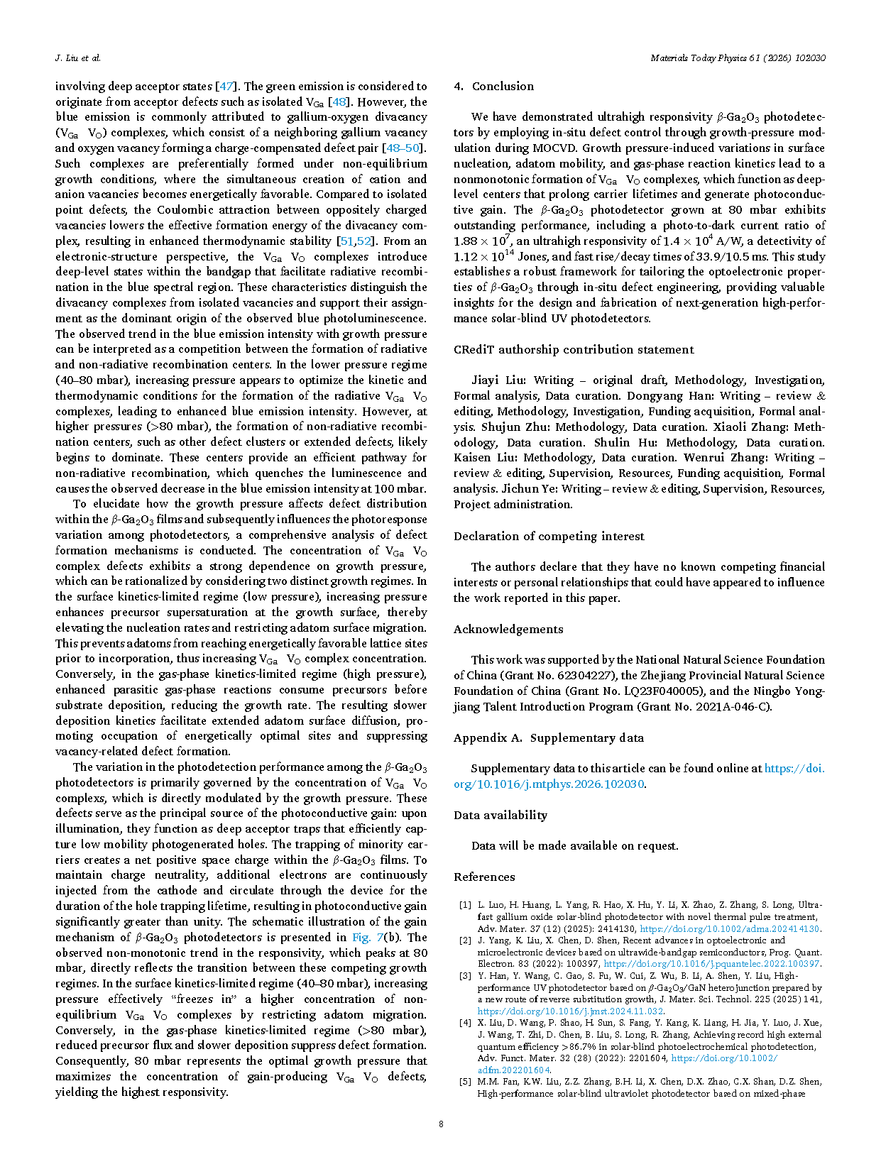 【国内论文】MTP丨中科院宁波材料所张文瑞研究员团队:通过原位生长压力调控缺陷工程实现超高响应度的 β-Ga₂O₃ 日盲紫外光电探测器