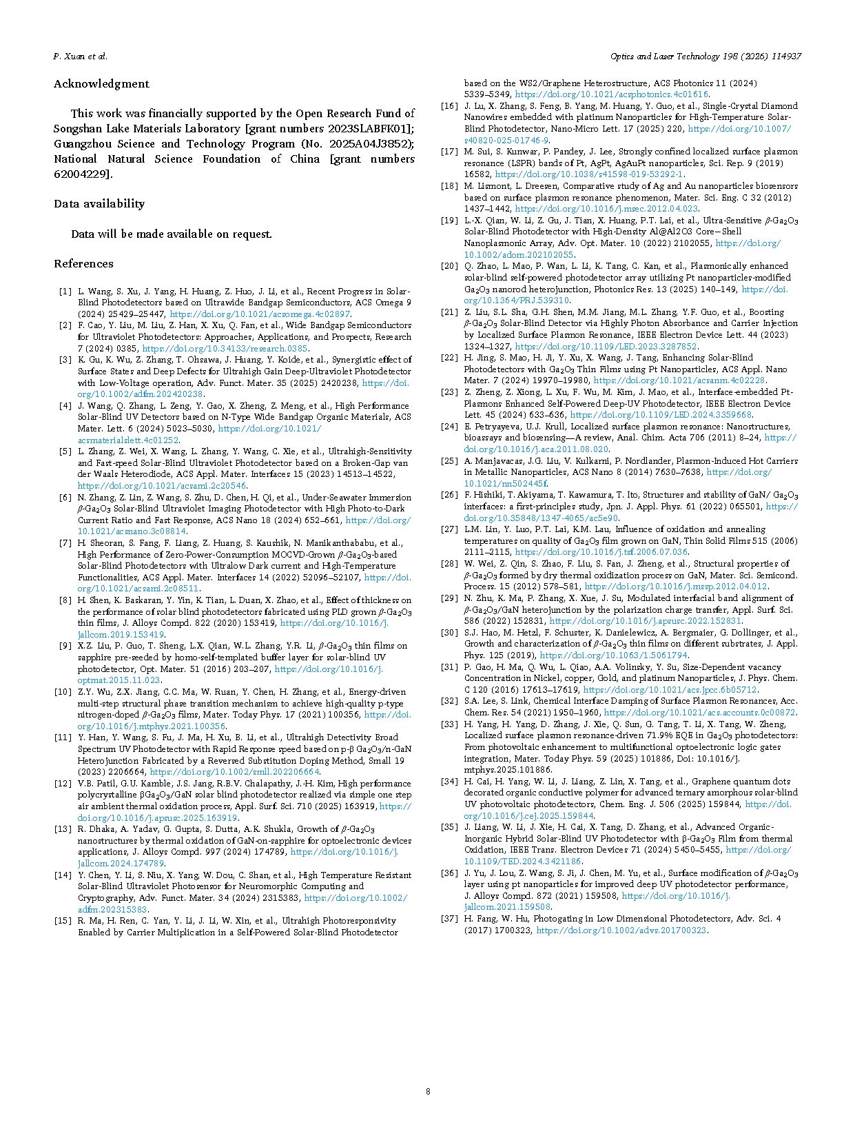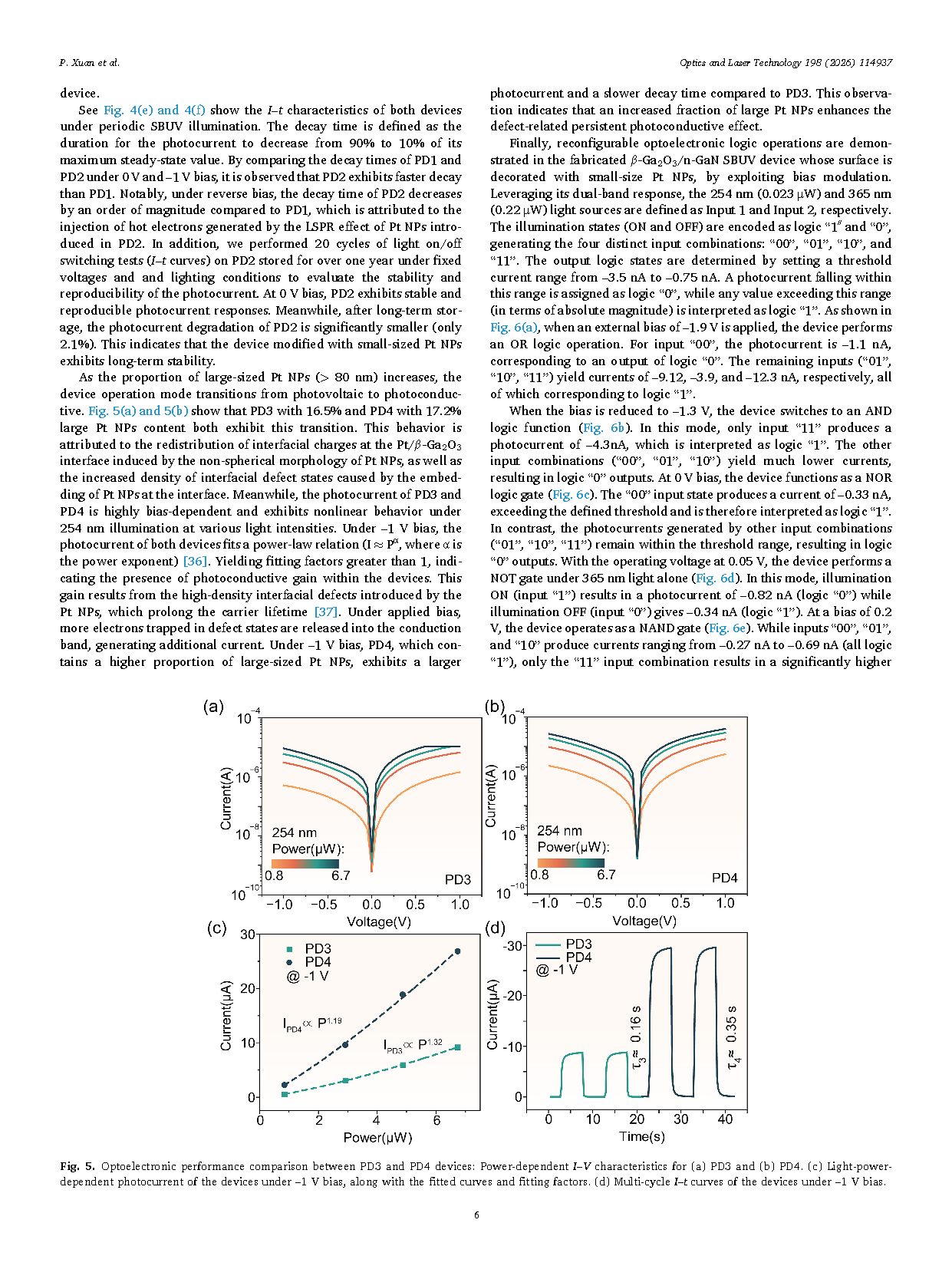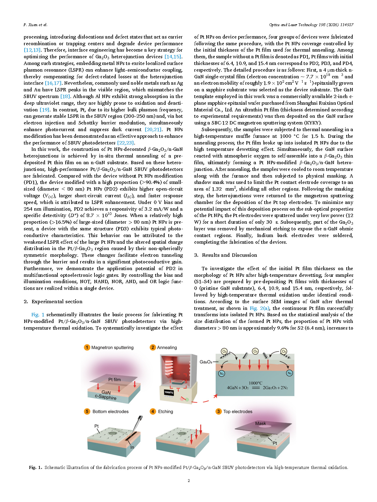 【国内论文】Opt. Laser. Technol.丨广东工业大学:负载Pt纳米颗粒的β-Ga₂O₃/n-GaN日盲紫外光电探测器及其在可重构光电逻辑门中的应用