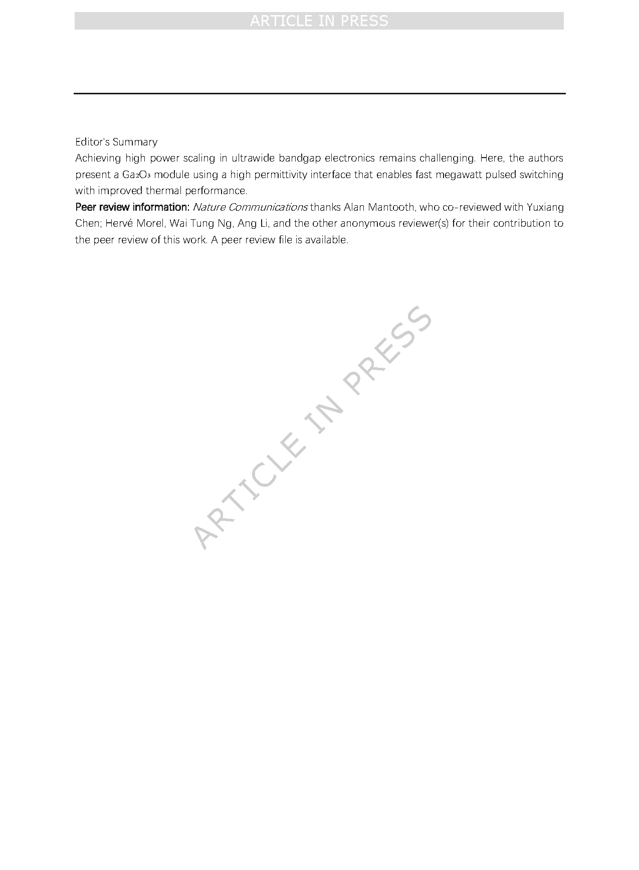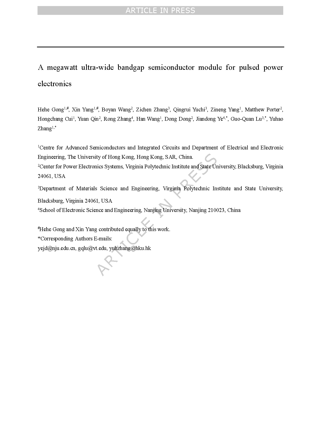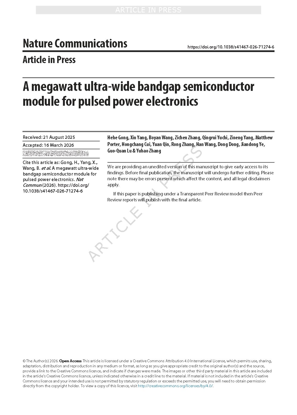 【国内论文】Nat.Commun.丨香港大学、弗吉尼亚理工大学、南京大学叶建东教授团队: 面向脉冲功率电子的兆瓦级超宽禁带半导体模块