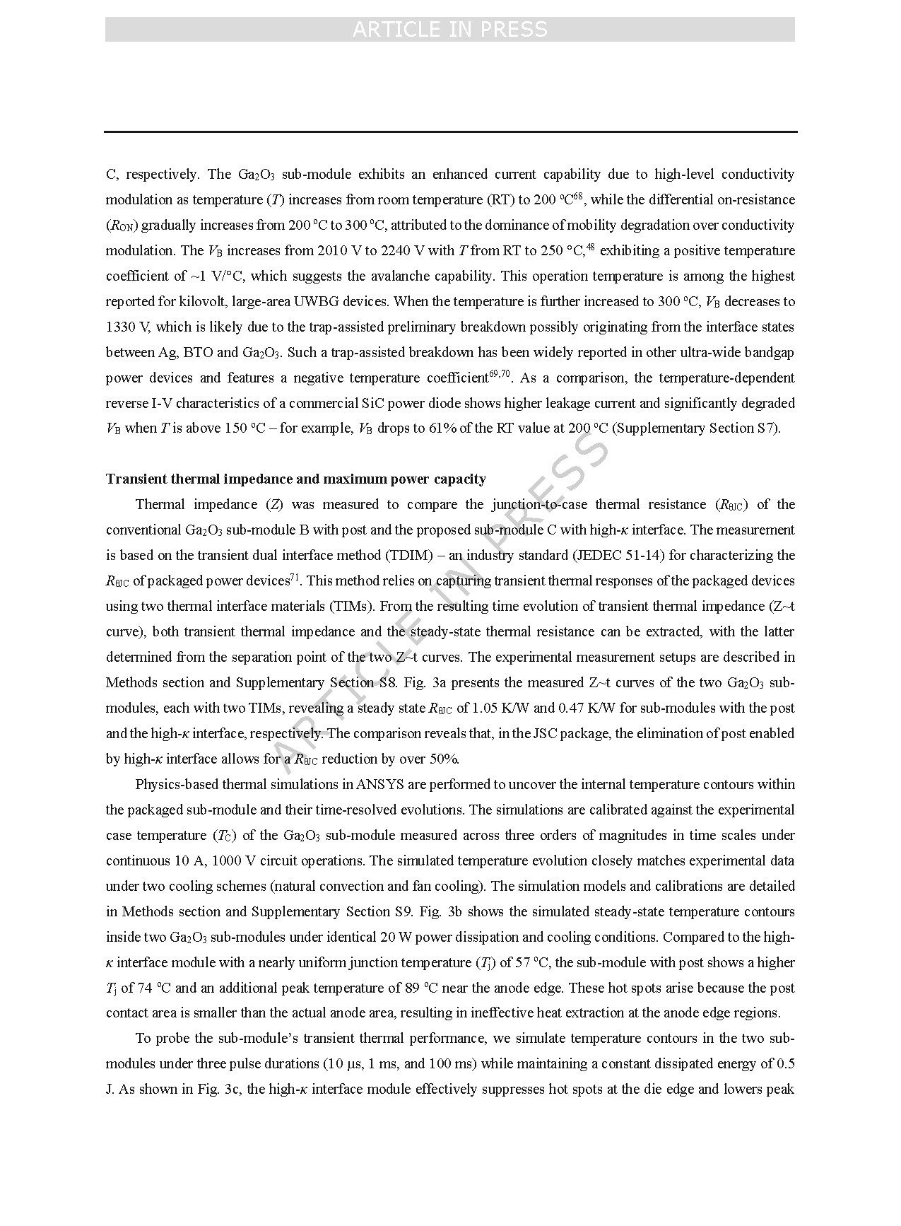 3.材料优势挖掘:充分利用 Ga₂O₃ 高体积热容与高温稳定性,短脉冲工况下温升更低、耐流更强。