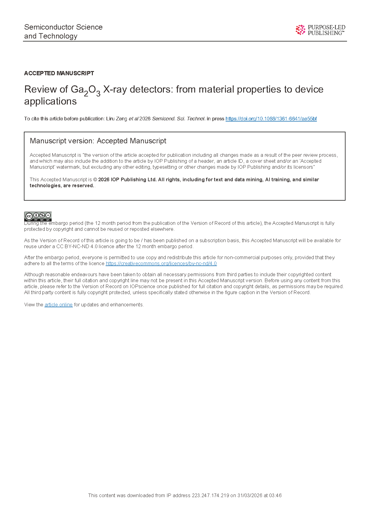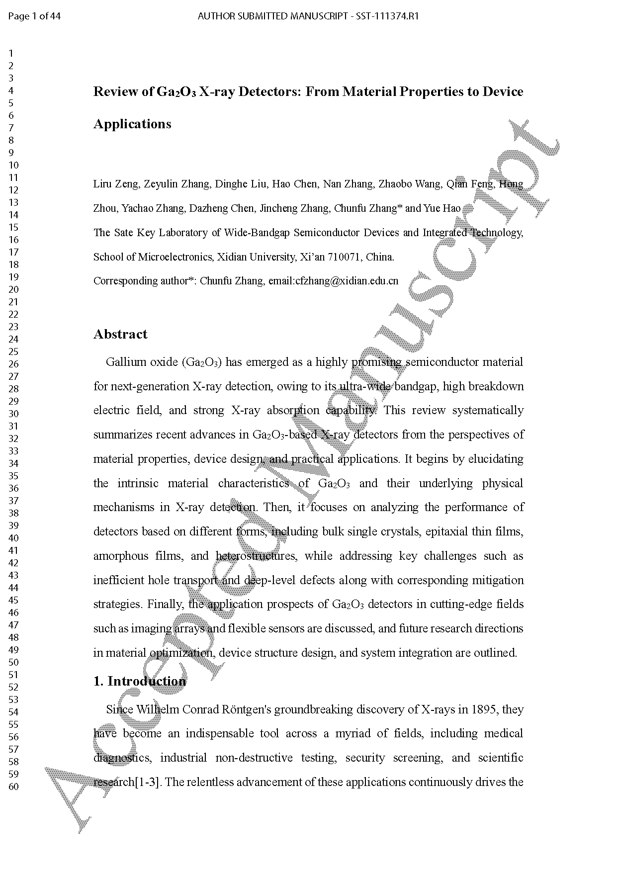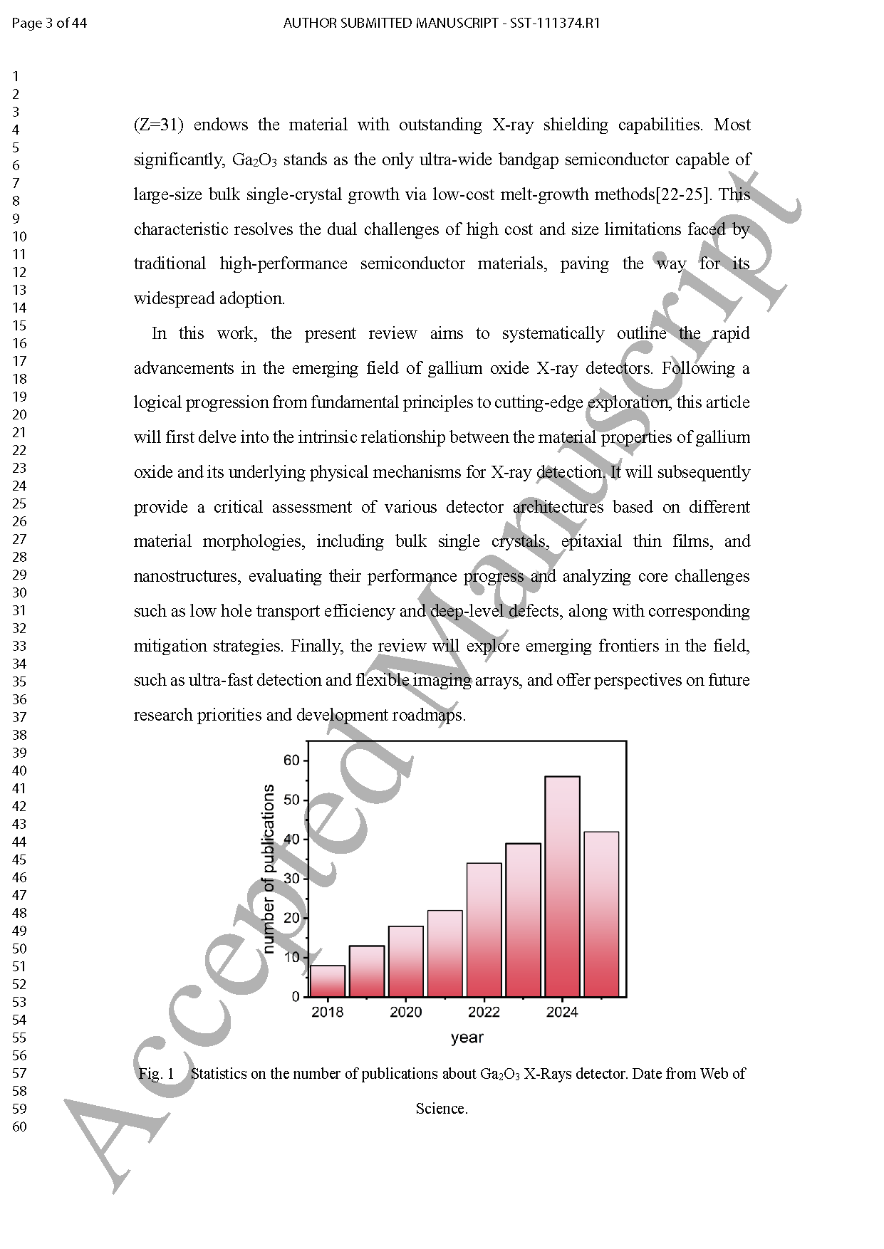 由西安电子科技大学郝跃院士、张进成教授、张春福教授的研究团队在学术期刊 Semiconductor Science and Technology 发布了一篇名为 Review of Ga₂O₃ X-ray detectors: from material properties to device applications(Ga₂O₃ X射线探测器综述:从材料特性到器件应用)的文章。