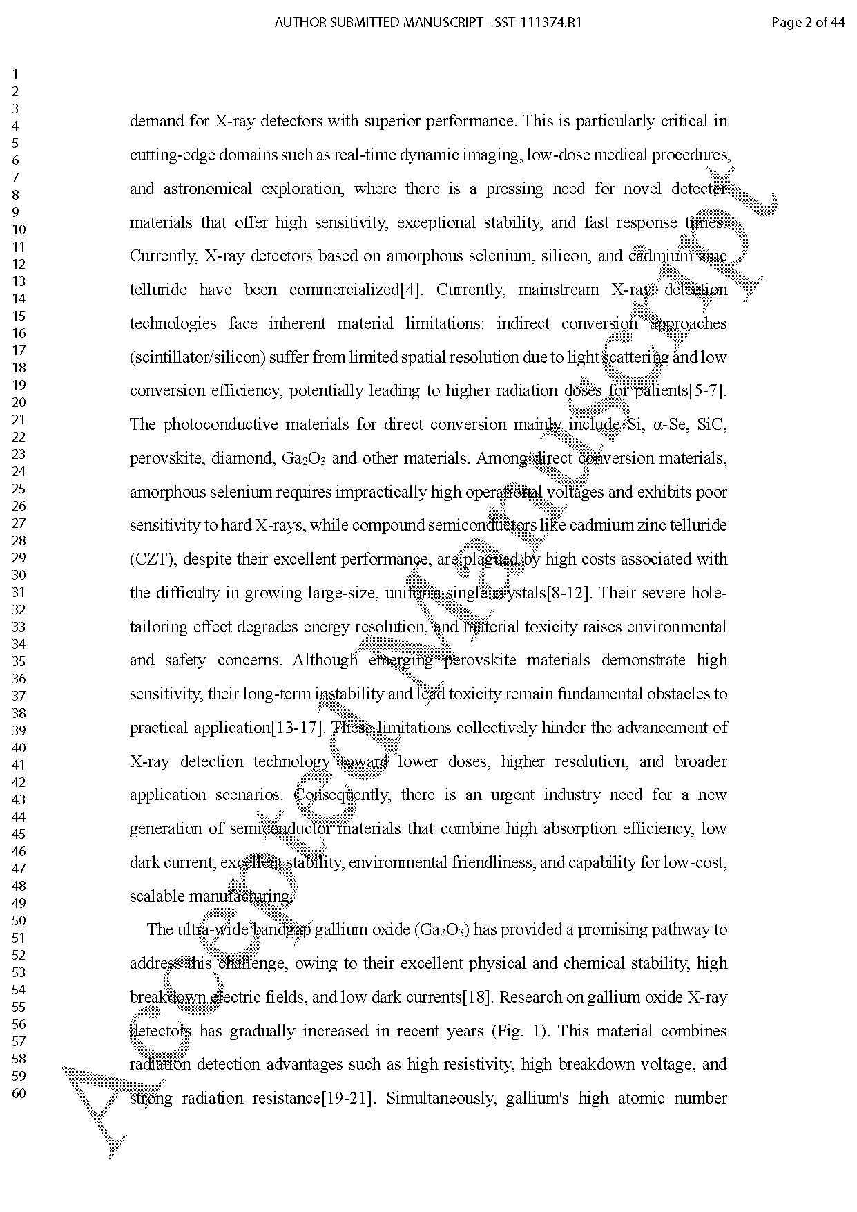 自 1895 年伦琴发现 X 射线以来,X 射线已广泛应用于医学诊断、工业无损检测、安全安检与科学研究。传统商用 X 射线探测器(非晶硒、硅、碲锌镉)存在工作电压高、稳定性差、成本高、铅毒性、空间分辨率有限等瓶颈。氧化镓(Ga₂O₃)作为超宽禁带半导体,凭借高击穿电场、强 X 射线吸收、优异稳定性与低成本大尺寸晶体生长能力,成为下一代 X 射线探测的理想材料。