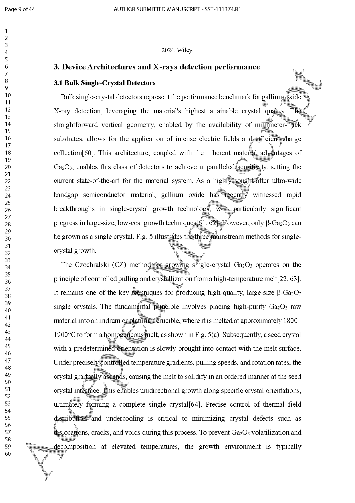 ●系统梳理 Ga₂O₃ 用于 X 射线探测的材料特性、制备方法与探测机理。