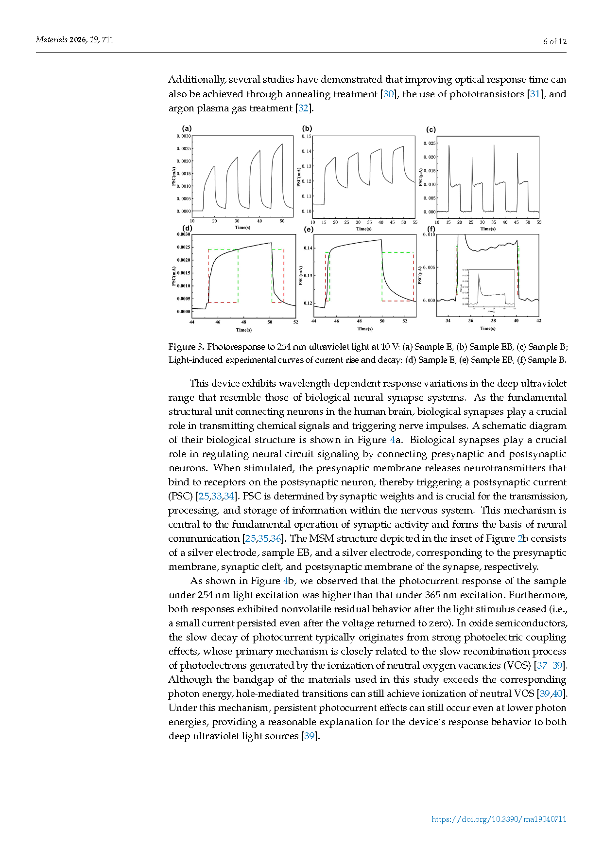 ●研究深入分析了混相界面处缺陷对载流子的捕获与释放过程。由于 ε/β 相界面的存在,氧空位等缺陷态形成的深能级中心减缓了载流子的复合速度,从而在物理层面实现了光电导的持久性,这是模拟记忆功能的关键。