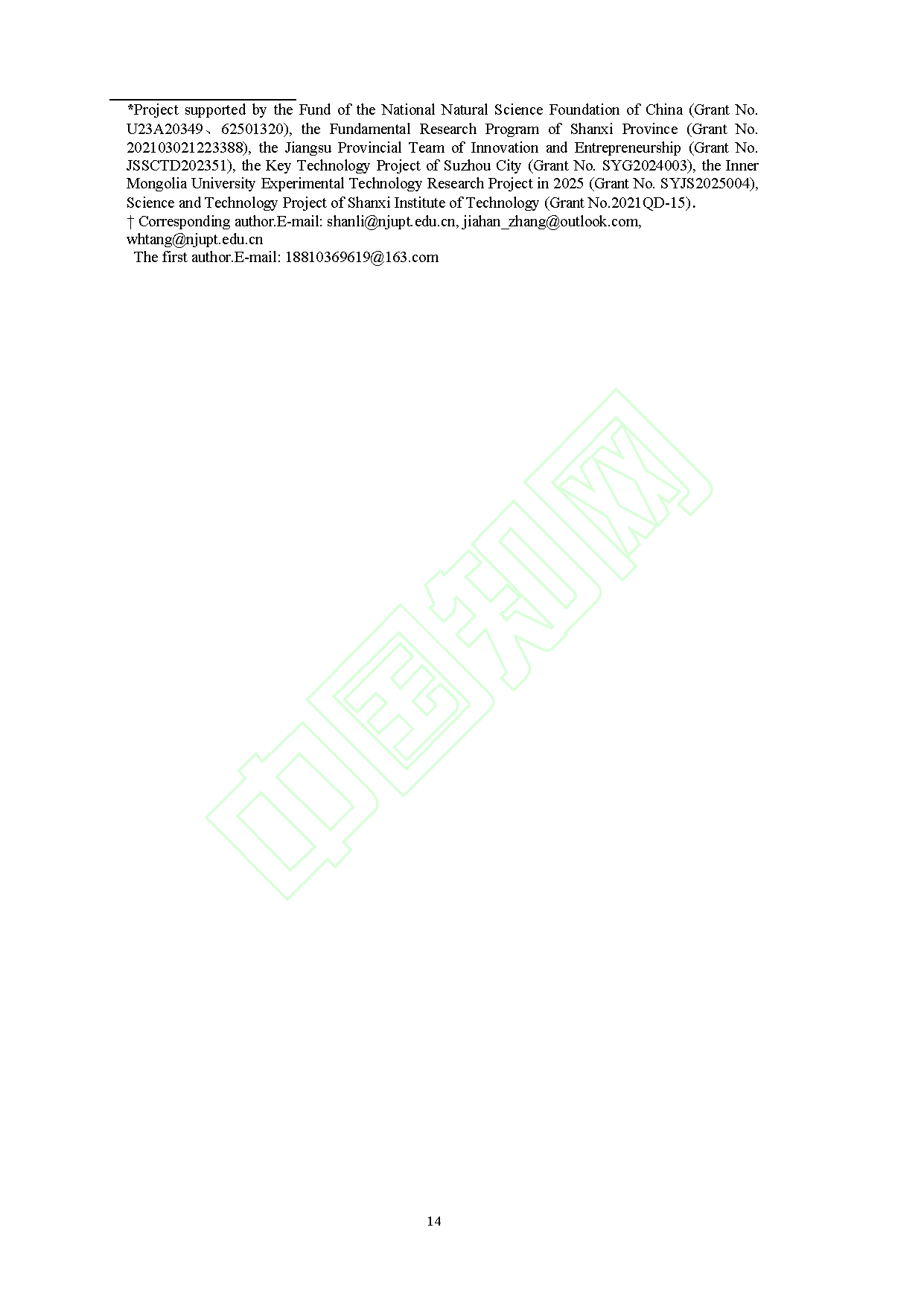 该研究得到国家自然科学基金、山西省基础研究计划项目、江苏省双创团队、苏州市科技计划项目、内蒙古大学实验技术研究项目、山西工程技术学院科技项目的资助。