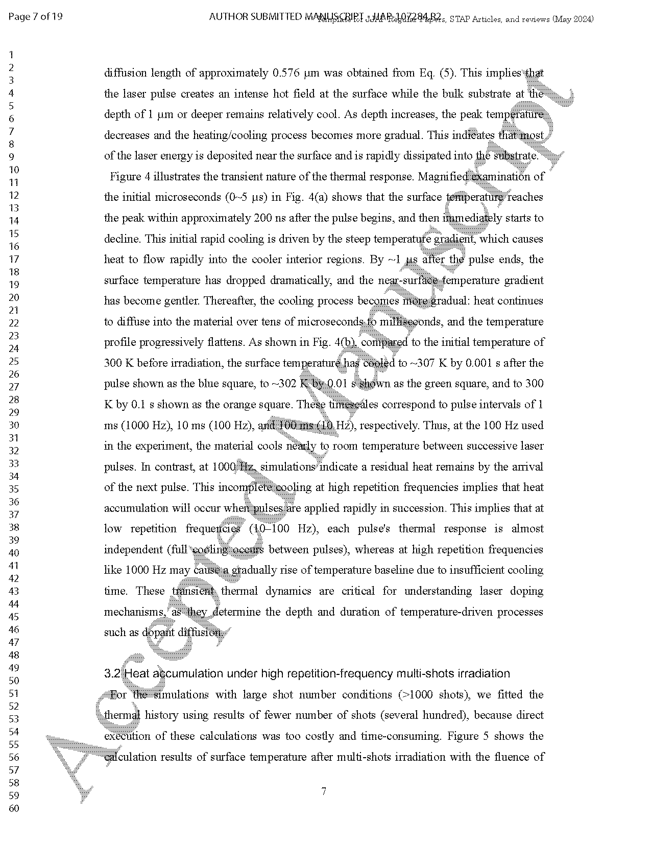 ●明确了 KrF 激光脉冲在 β-Ga2O3 浅表面的瞬态热特性与频率依赖的热累积效应, 厘清了激光频率对 β-Ga2O3 激光掺杂热过程的调控机制。