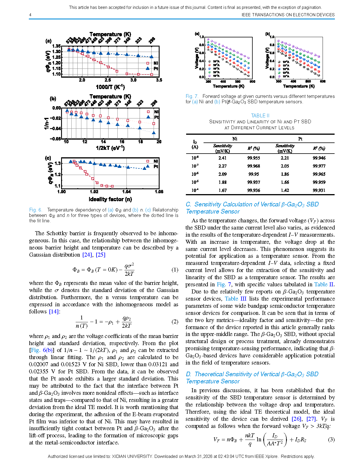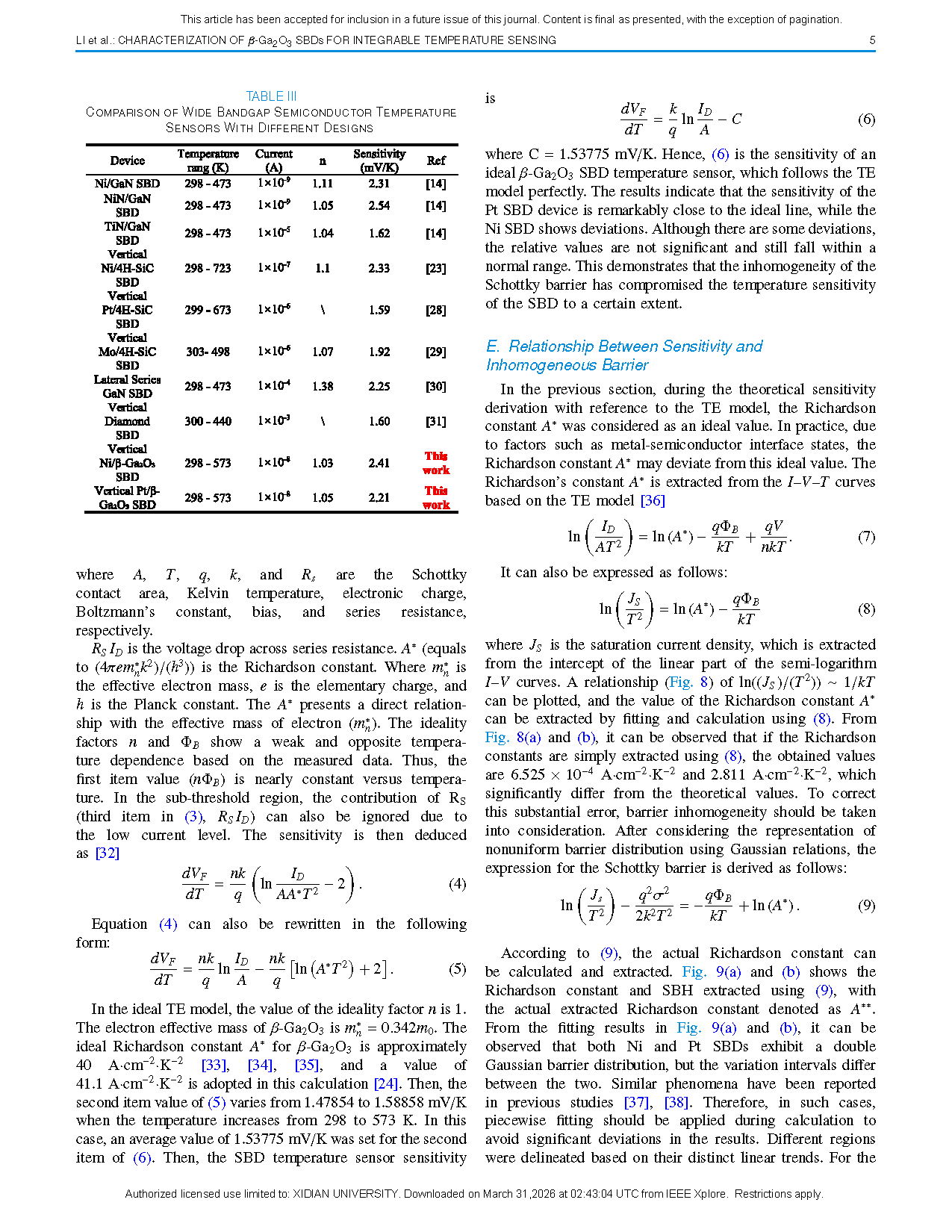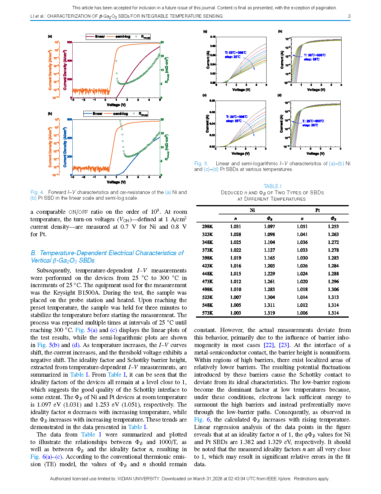 【会员论文】西电郝跃院士、张进成教授团队:用于可集成温度传感应用的β-Ga₂O₃肖特基二极管的表征与性能分析