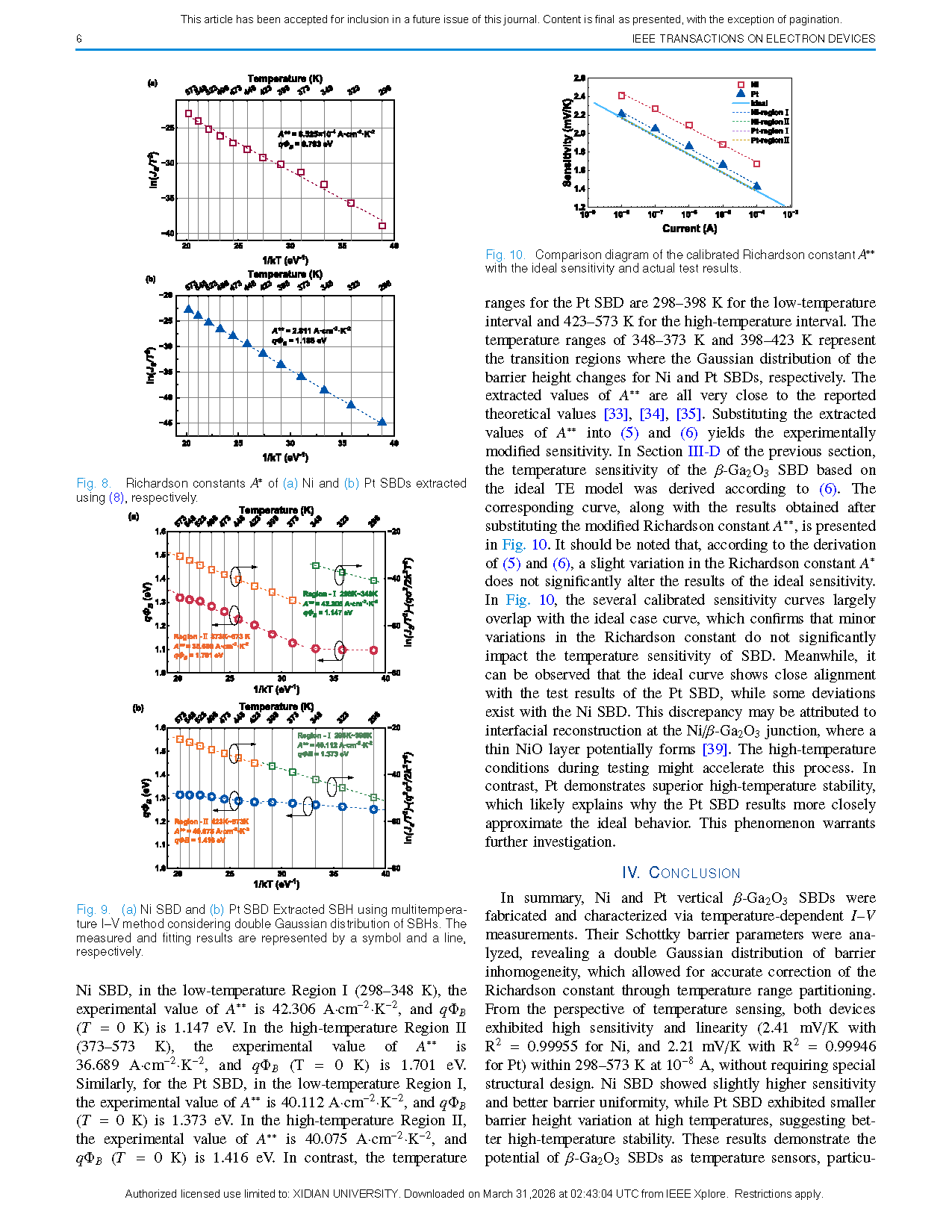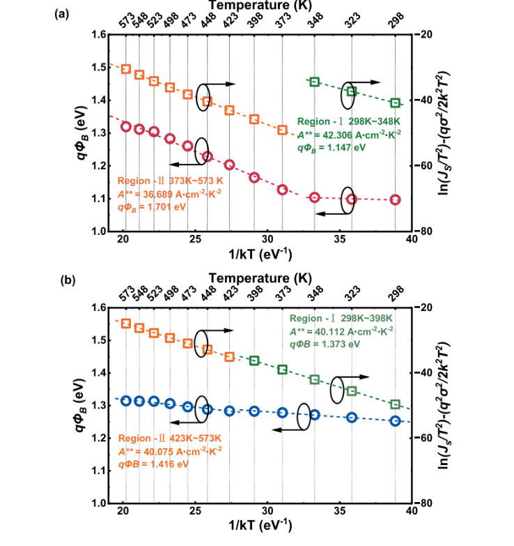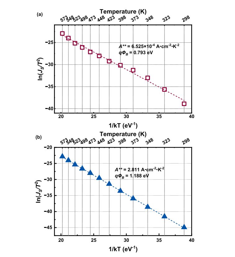 3. 精准提取有效理查森常数:分区拟合后数值与理论值高度匹配,为 β-Ga₂O₃ 器件参数标定提供可靠方法。
