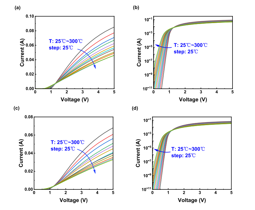 随着功率器件向集成化、模块化发展,散热问题愈发关键,因此研发可集成的温度传感器,对监测 β-Ga₂O₃ 器件、电路与模块热状态极为必要。二极管常被用作温度传感器,工作在亚阈值区可降低功耗与自热影响;而 β-Ga₂O₃ SBD 具有阈值电压低、结构简单、工艺兼容、功耗低等特点,适合做温度传感器,但专门面向温度传感应用的 β-Ga₂O₃ SBD 研究几乎空白。