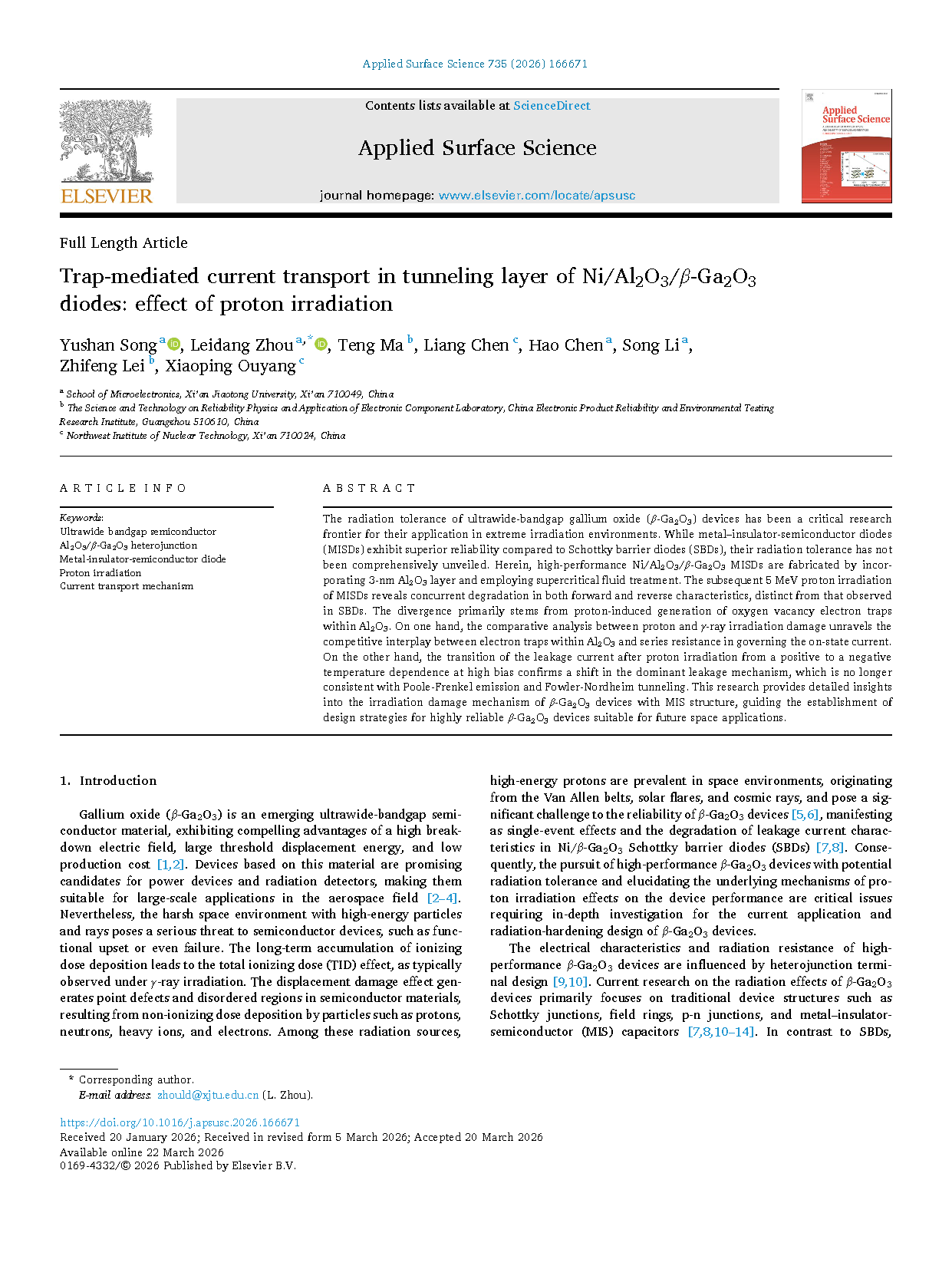 【会员论文】ASS | 西安交通大学周磊簜副教授团队:Ni/Al₂O₃/β-Ga₂O₃二极管隧穿层中陷阱介导的电流输运:质子辐照效应